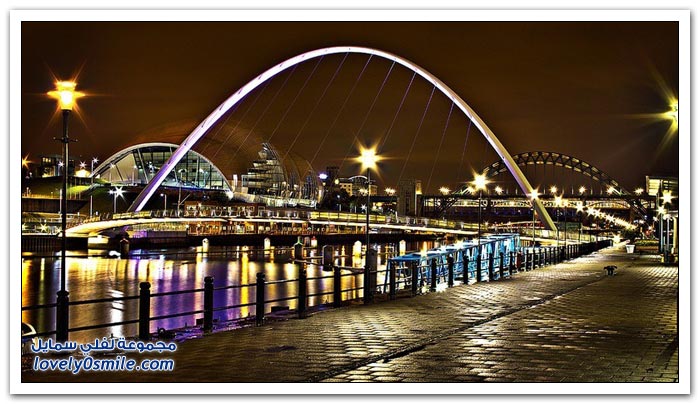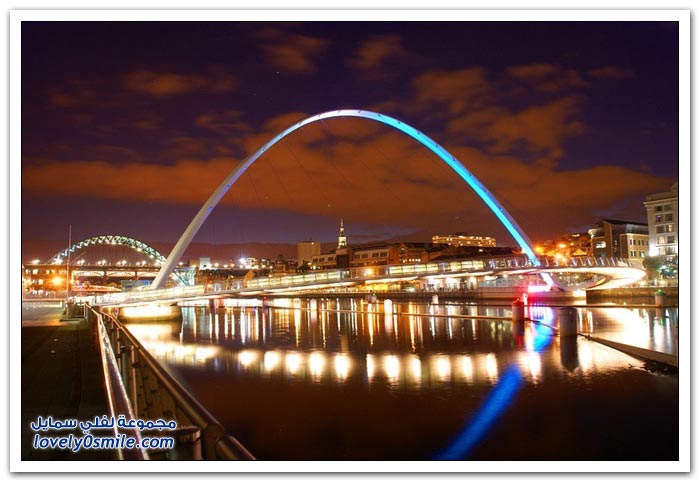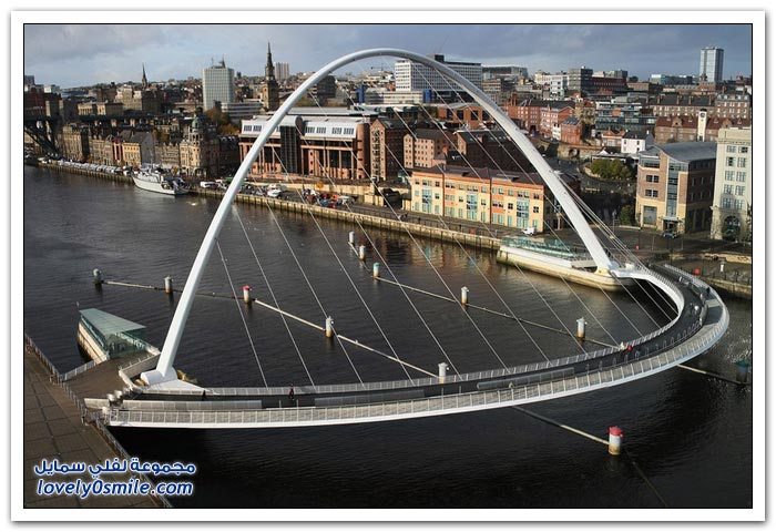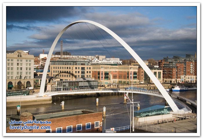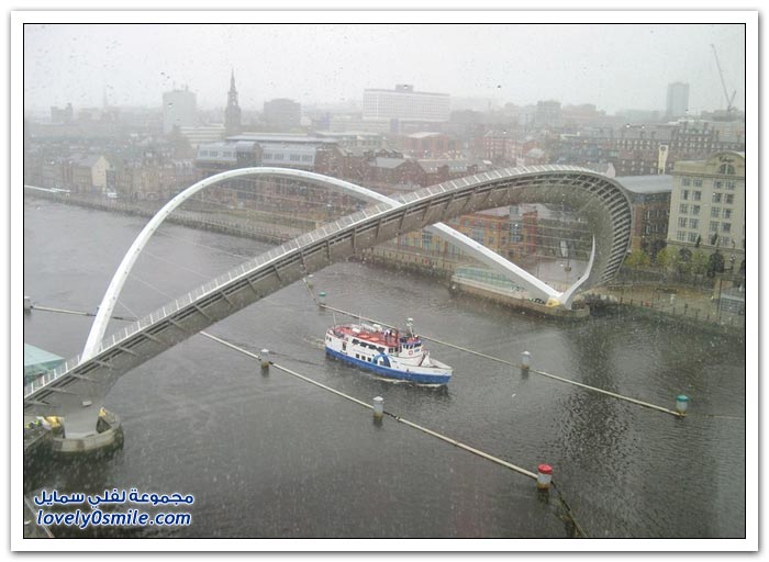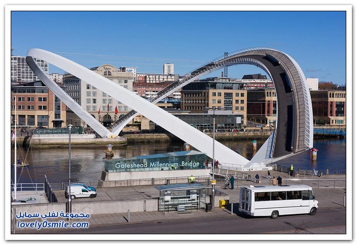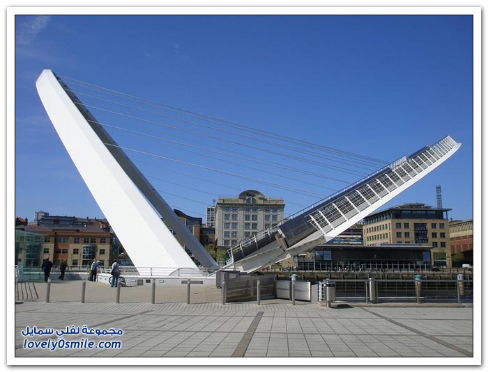 * واحدة من أهم الجسور الفريدة من نوعها في العالم. تصميم الجسر وكأنه غطاء العين الضخمة ، والتي تتحرك صعودا وهبوطا. جسر الألفية يربط شمال انكلترا مع نيوكاسل.