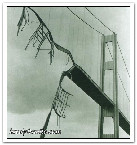 جسر مضيق تاكوما الجديد في واشنطن بالولايات المتحدة الأمريكية، ترجح ذاتياً وانهار في جو غير عاصف عام 1940.