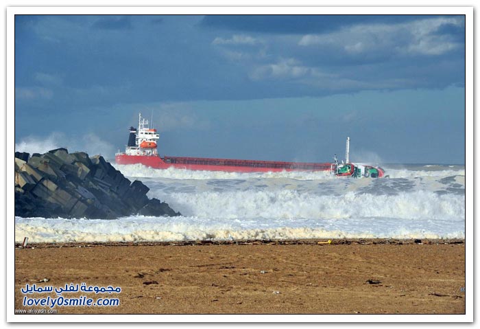 أدى اصطدام سفينة شحن اسبانية تنقل كميات من الأسمدة بحاجز قبالة ساحل جنوب غربي فرنسا لانشطارها لنصفين.