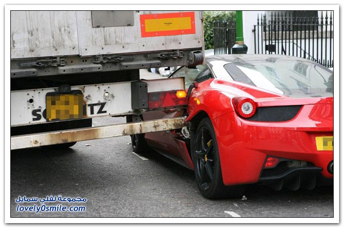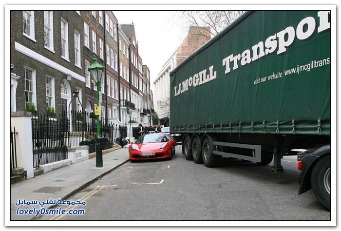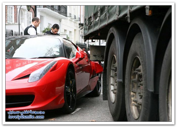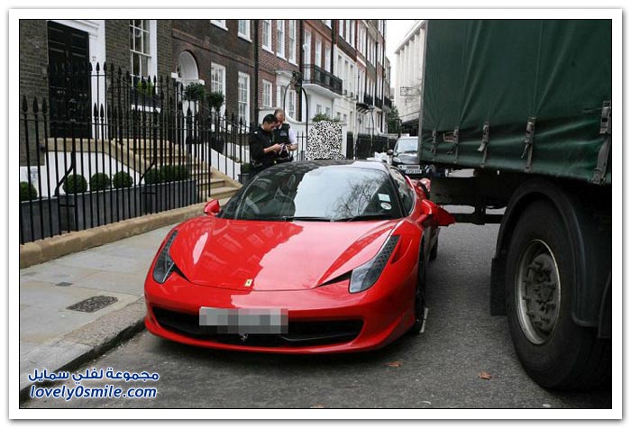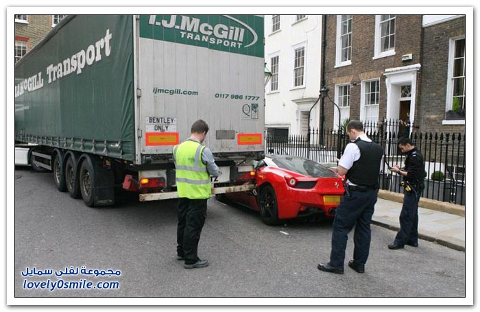 شاحنة تصدم فيراري متوقفة في لندن