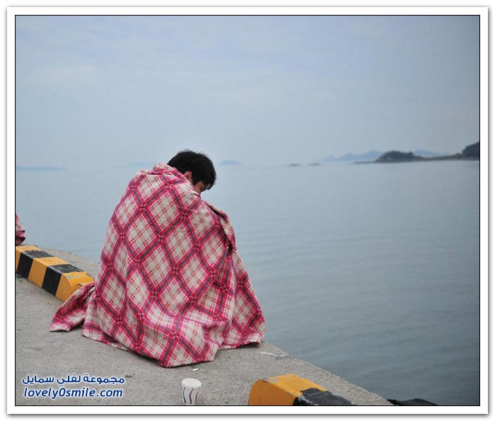 - وعرض التلفزيون صوراً لركاب خائفين يرتدون سترات النجاة ويتزاحمون على قوارب مطاطية، فيما كانت المياه تضرب حافة العبارة عند غرقها على بعد 20 كلم قبالة جزيرة "بيونغبونغ" الجنوبية.