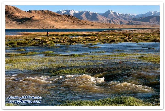 - مياه بحيرة كاراكول يعتقد أنها تشكلت عندما ضرب نيزك الأرض قبل ملايين السنين، تظهر كواحة وسط منطقة "بامير" التي توصف بأنها "سقف العالم".