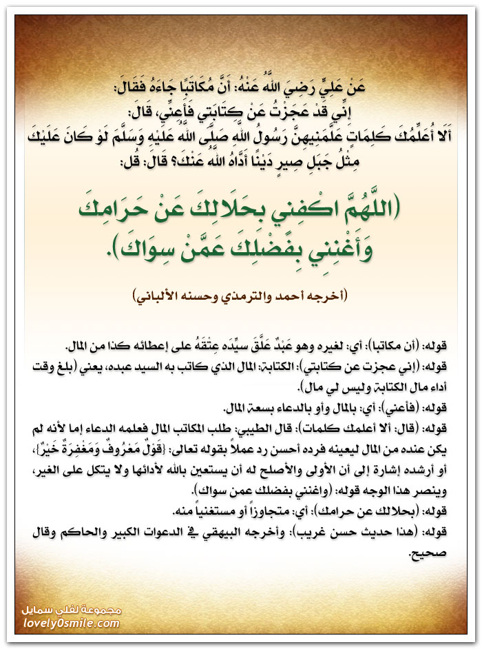 أكثر من يموت من أمتي + اللهم اكفني بحلالك عن حرامك + ما يُقول إذا عصفت الريح