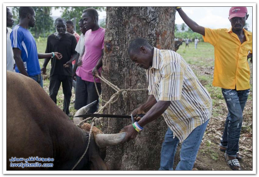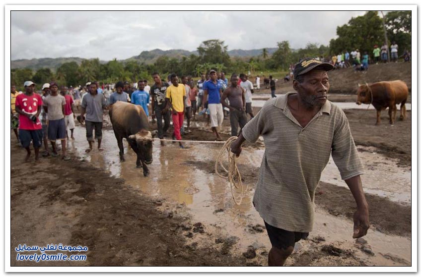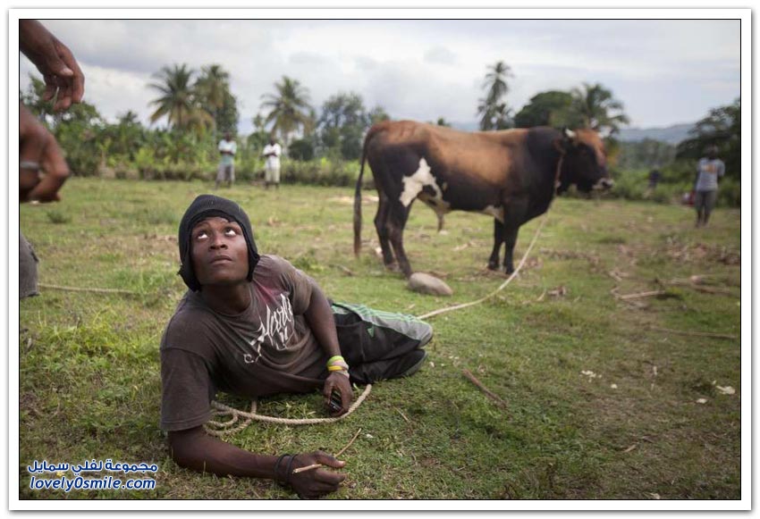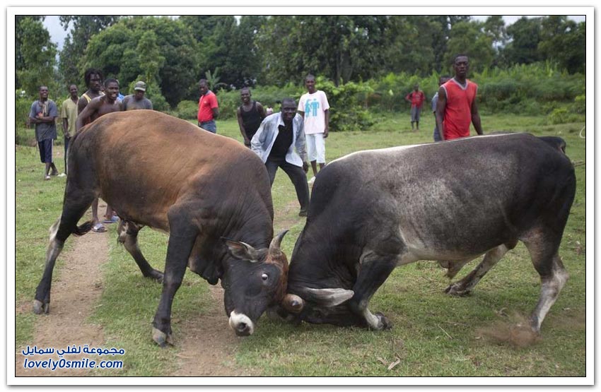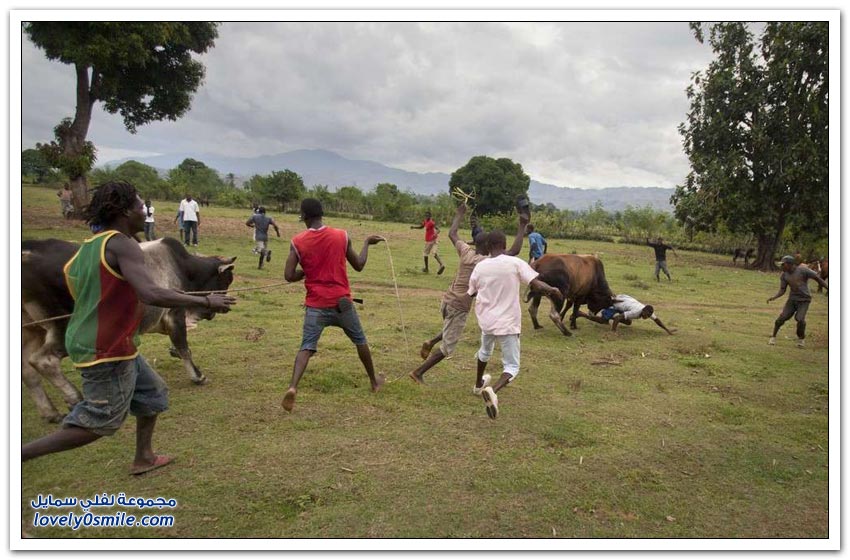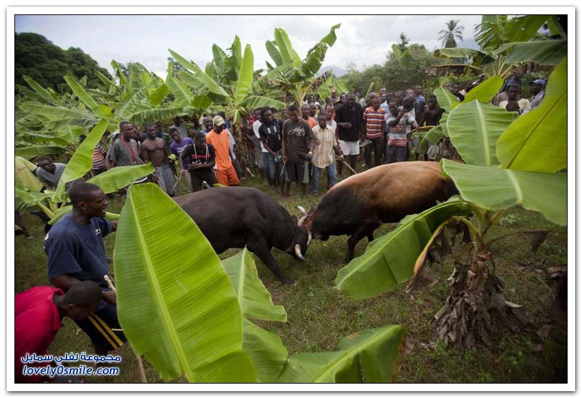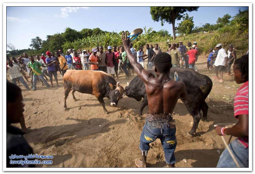 * يجتمع السكان المحليون في "هايتي" مساء كل يوم أحد من كل أسبوع ليمارسوا هوايتهم المفضلة وهي مصارعة الثيران، ليس للمشاهدة وحسب وإنما للرهان أيضاً، حيث يكسب صاحب الثور الرابح مبلغاً يوازي 450 دولار أمريكي، في الوقت الذي يعيش فيه سكان هذه الجزيرة على دولار واحد في اليوم.