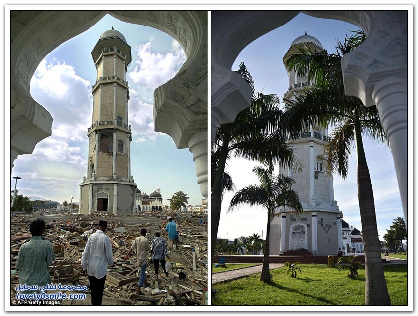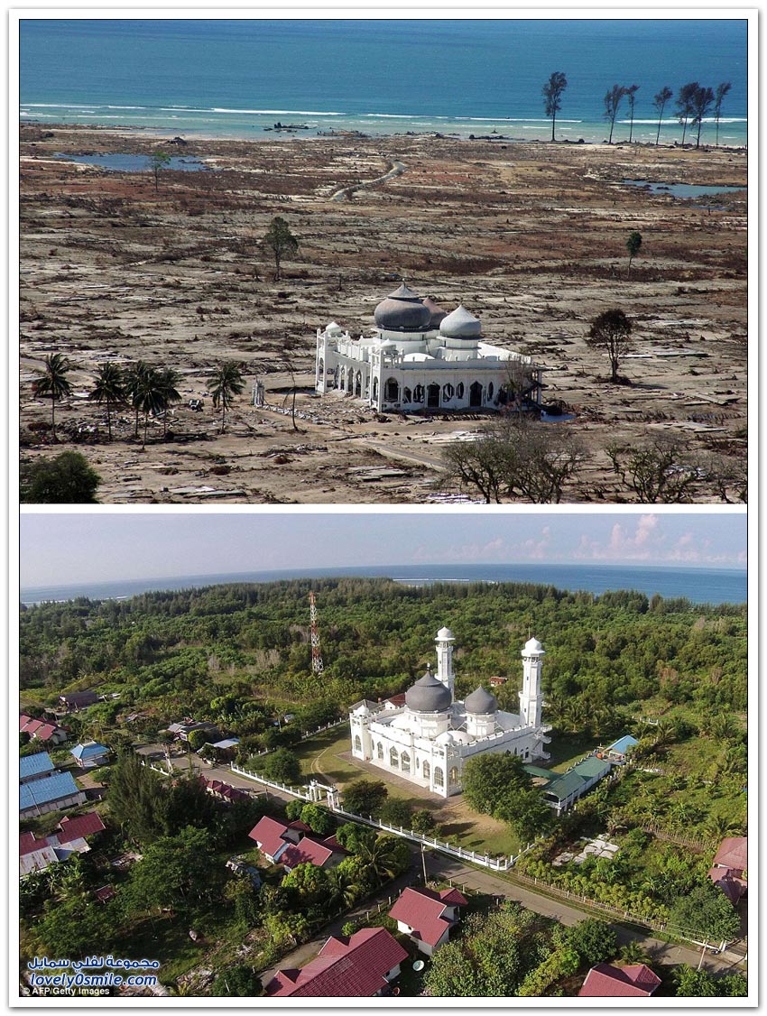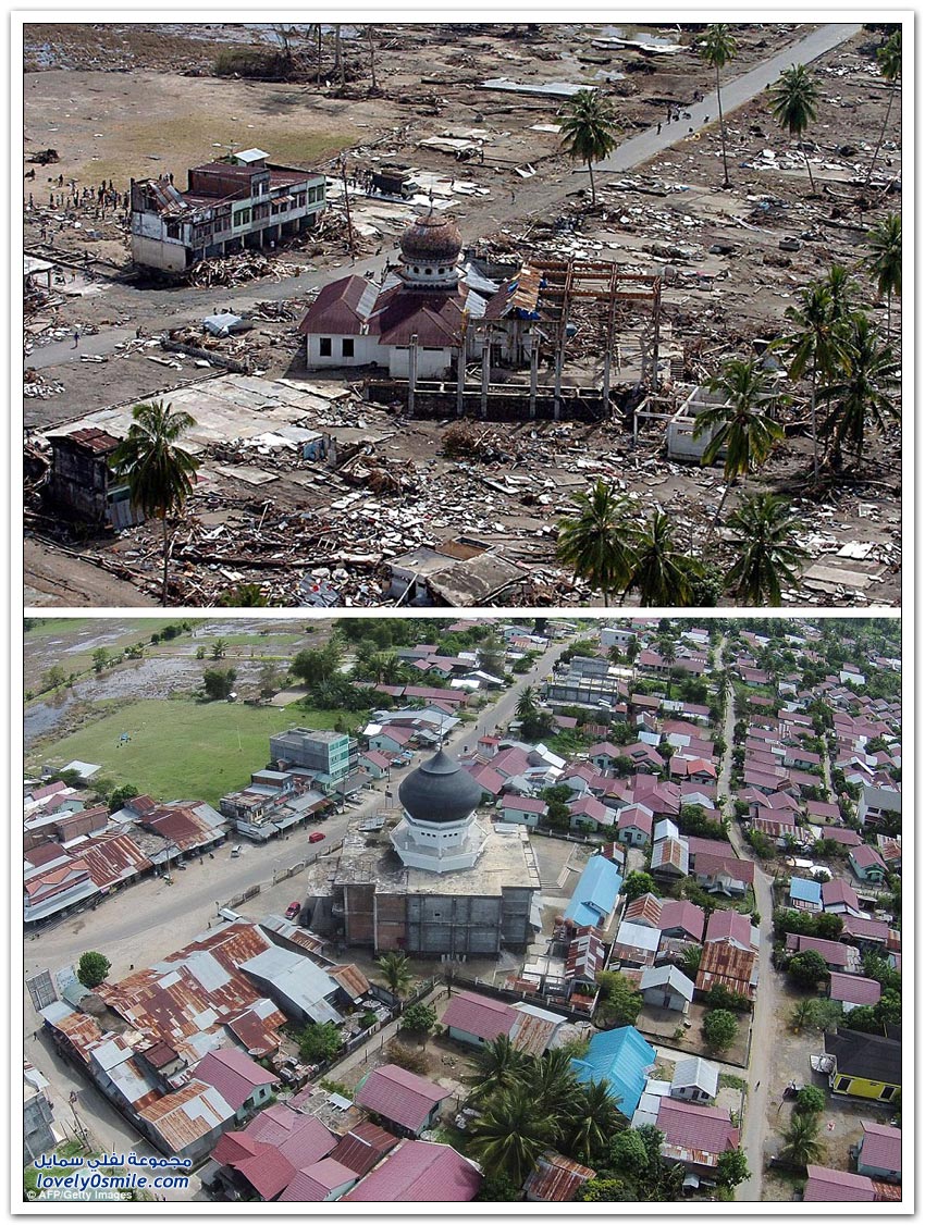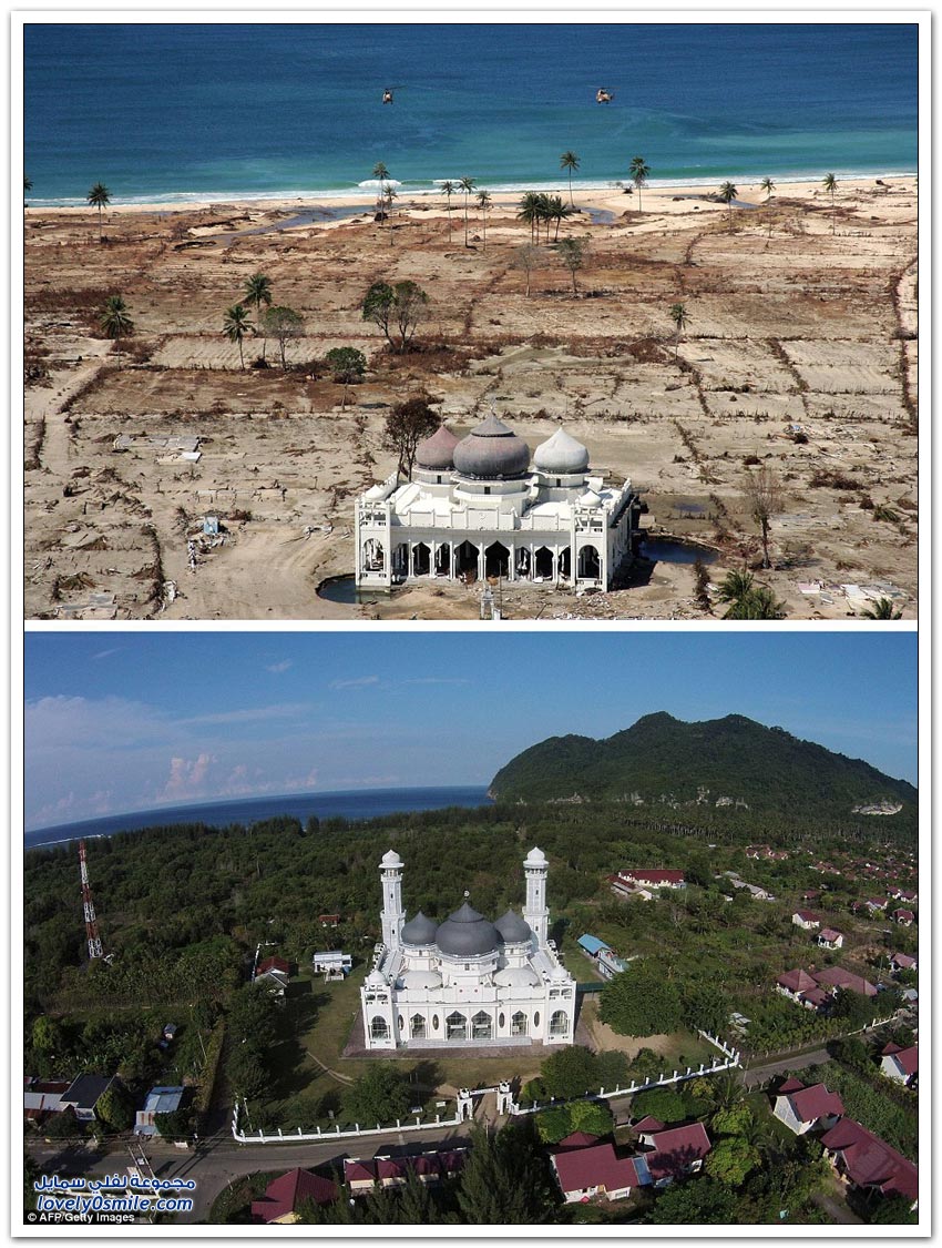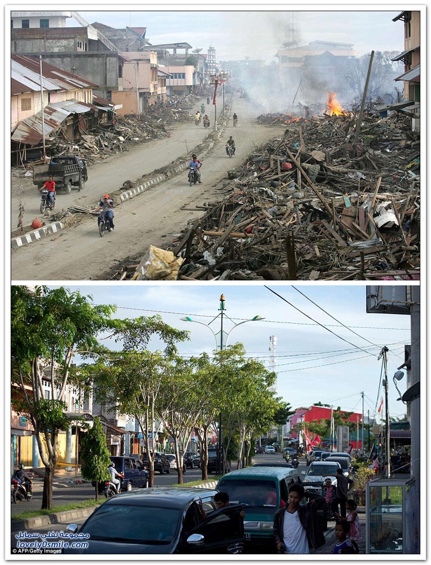 - بعد جهود 10 سنوات رجعت المدينة إلى عهدها السابق كما تظهر لنا هذه الصور التي التقطت بعضها بعد أسبوع من كارثة تسونامي وبعضها الآخر لنفس الأماكن في الأول من ديسمبر عام 2014.