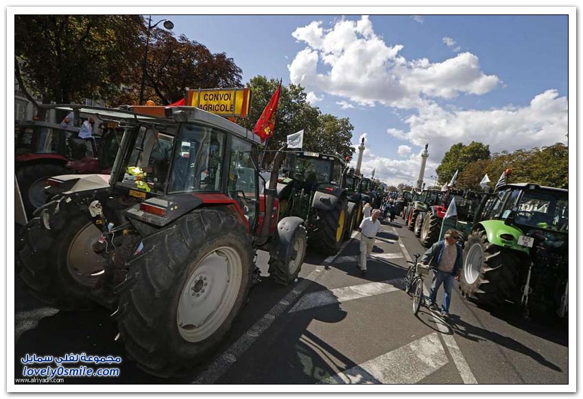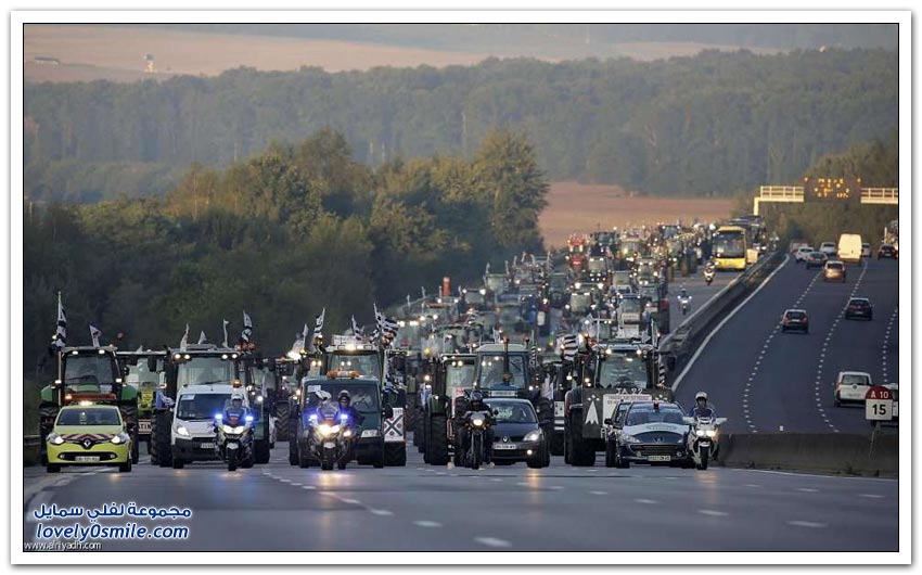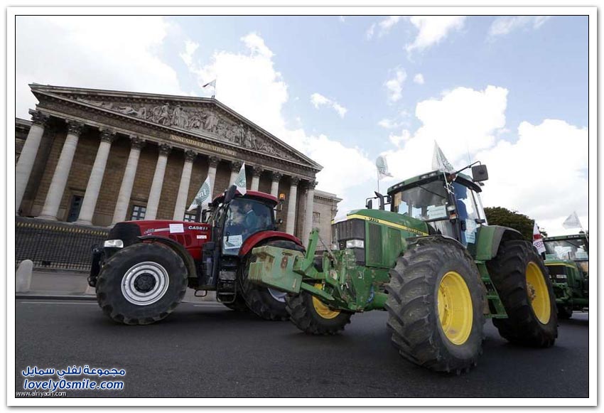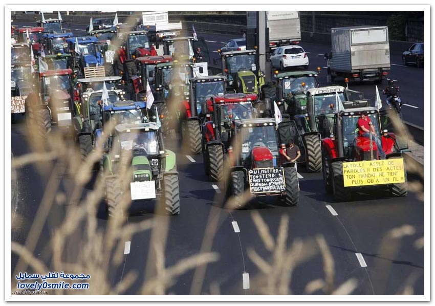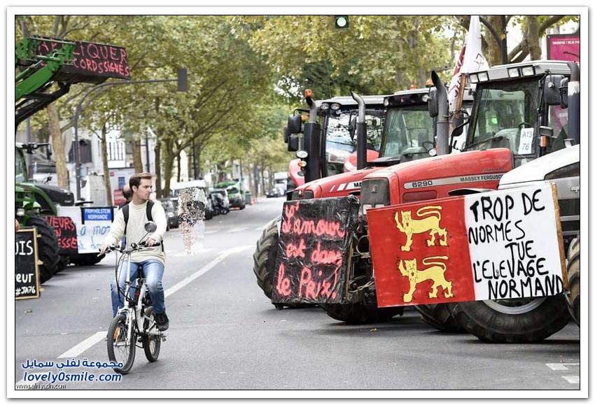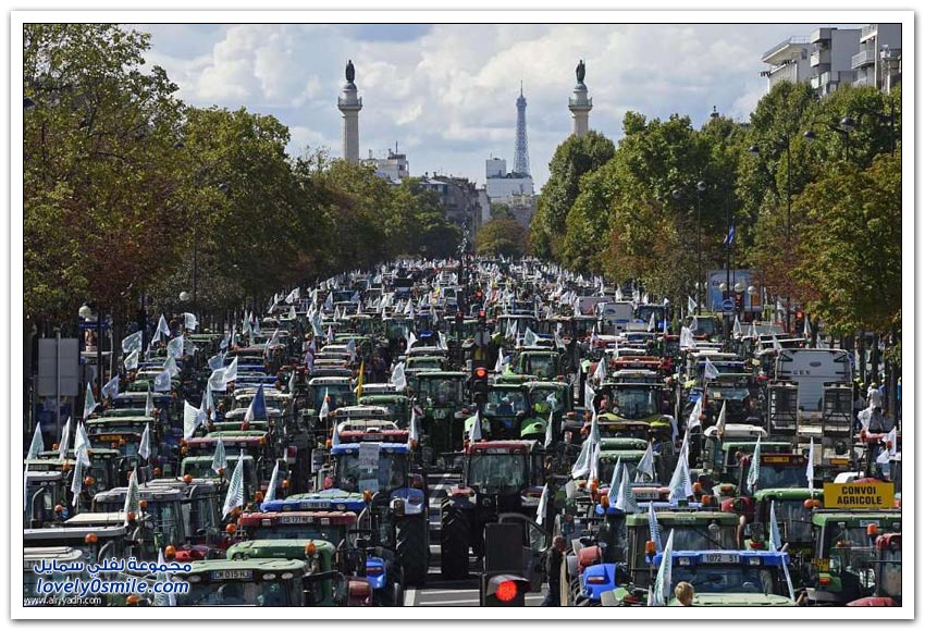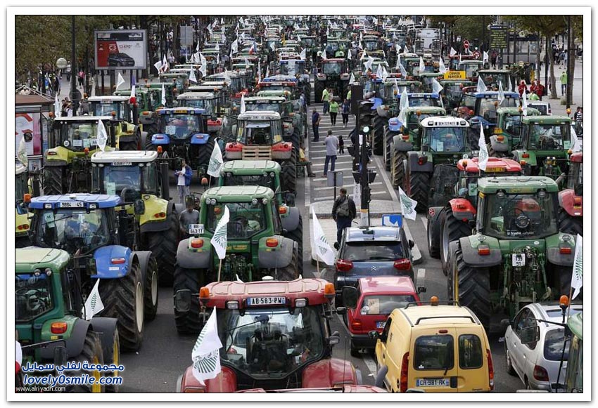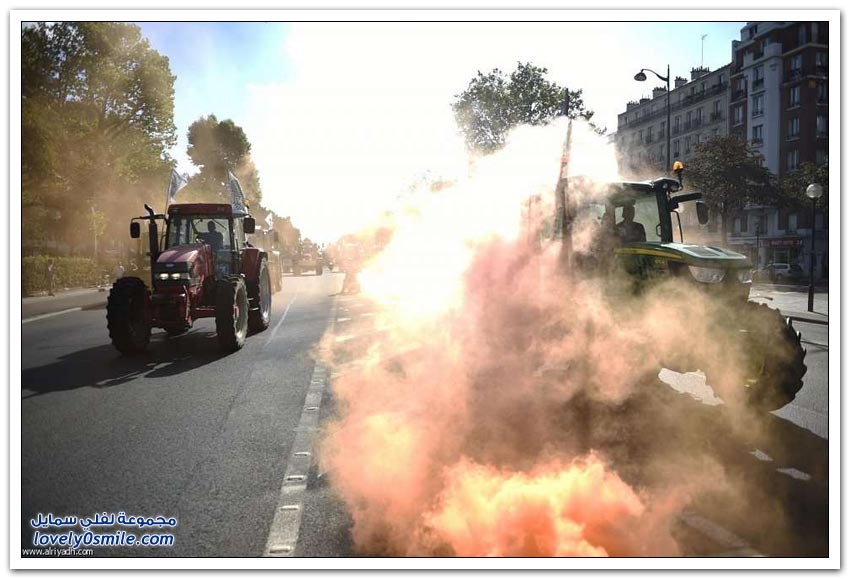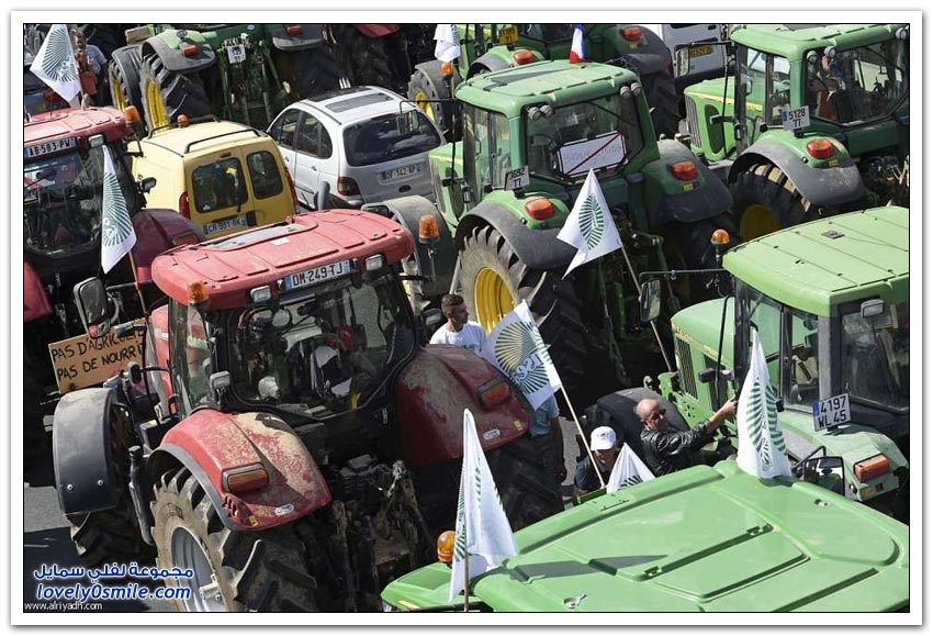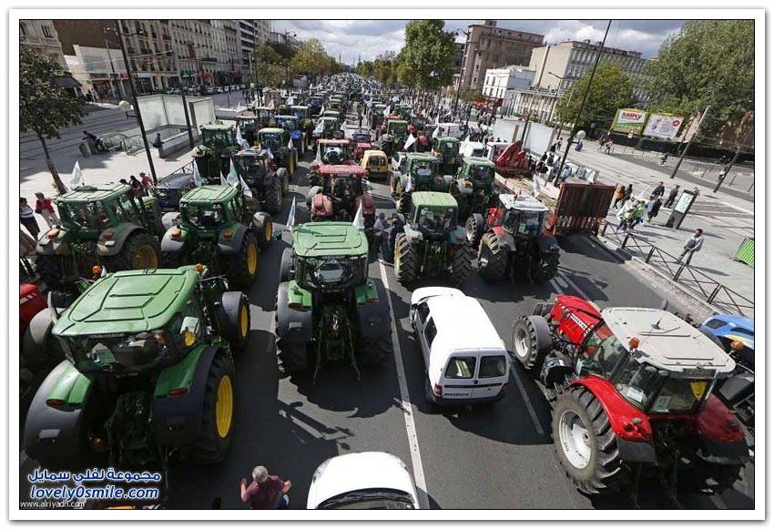 مزارعون فرنسيون يتوجهون إلى باريس بالجرارات والشاحنات للإعراب عن غضبهم إزاء ما يعتبرونه أوضاع السوق التي لا تحتمل.