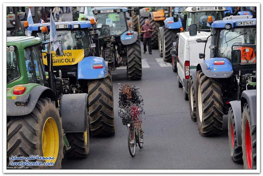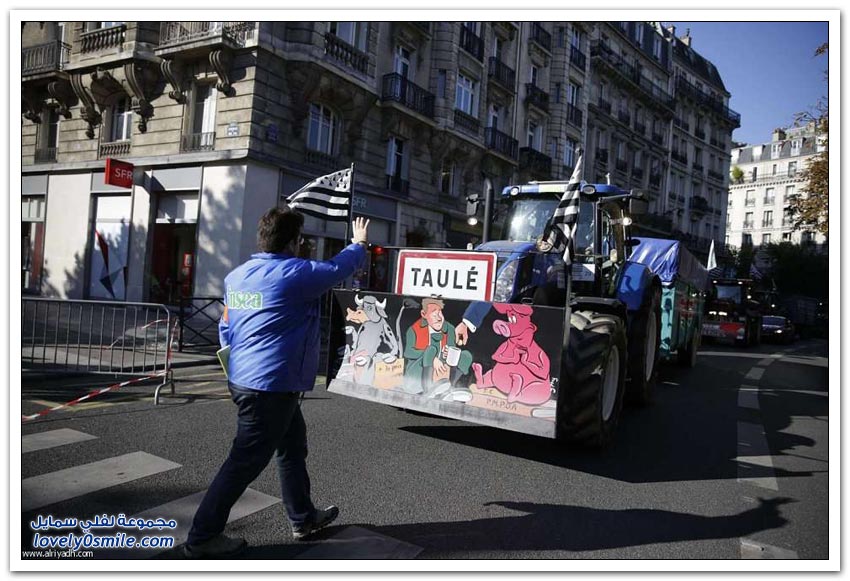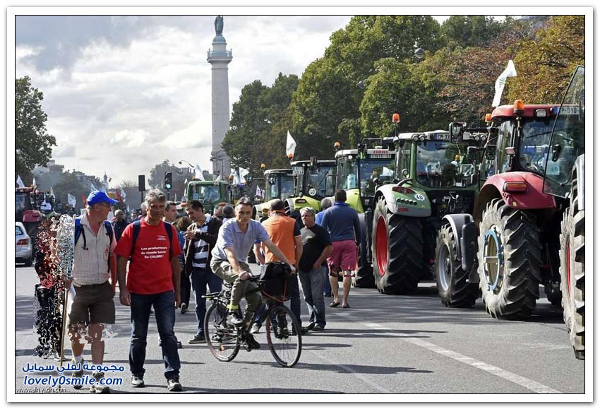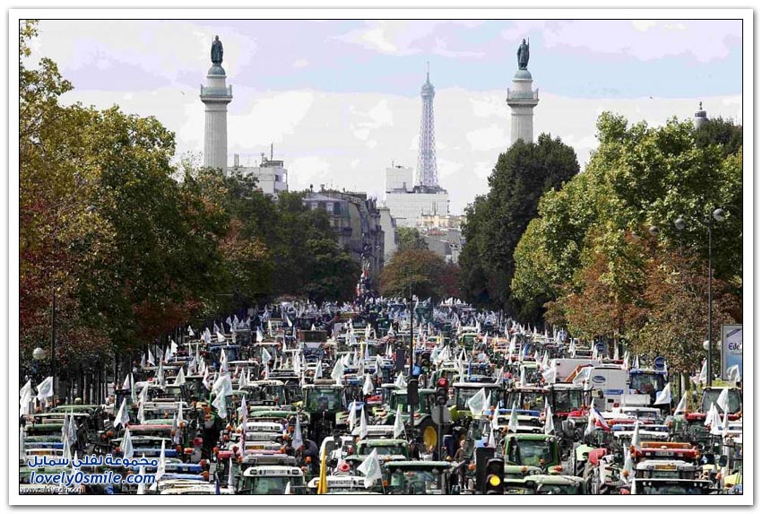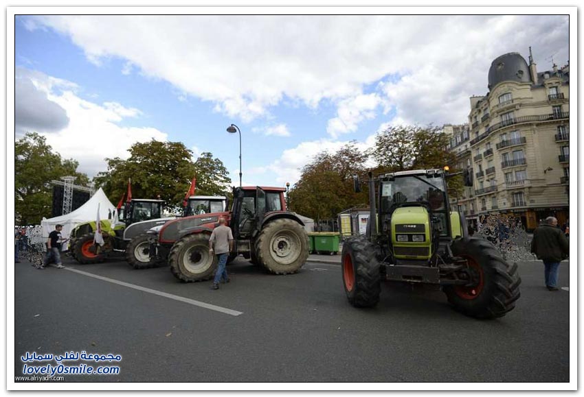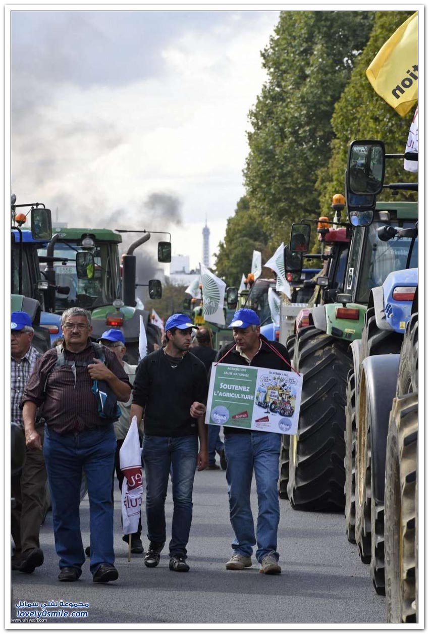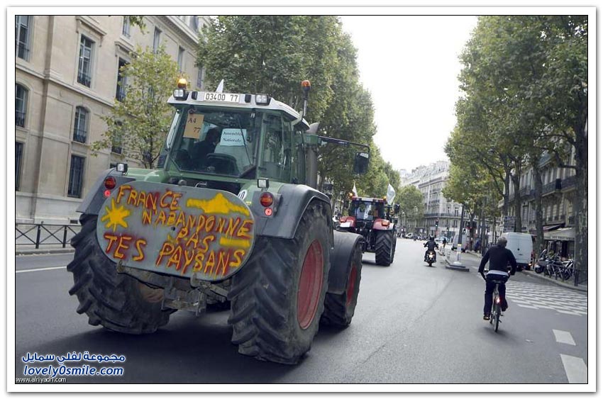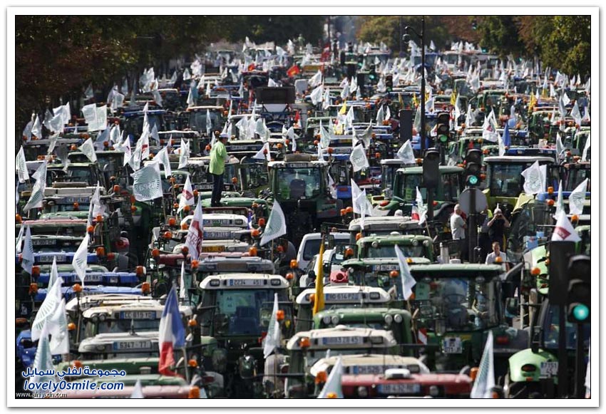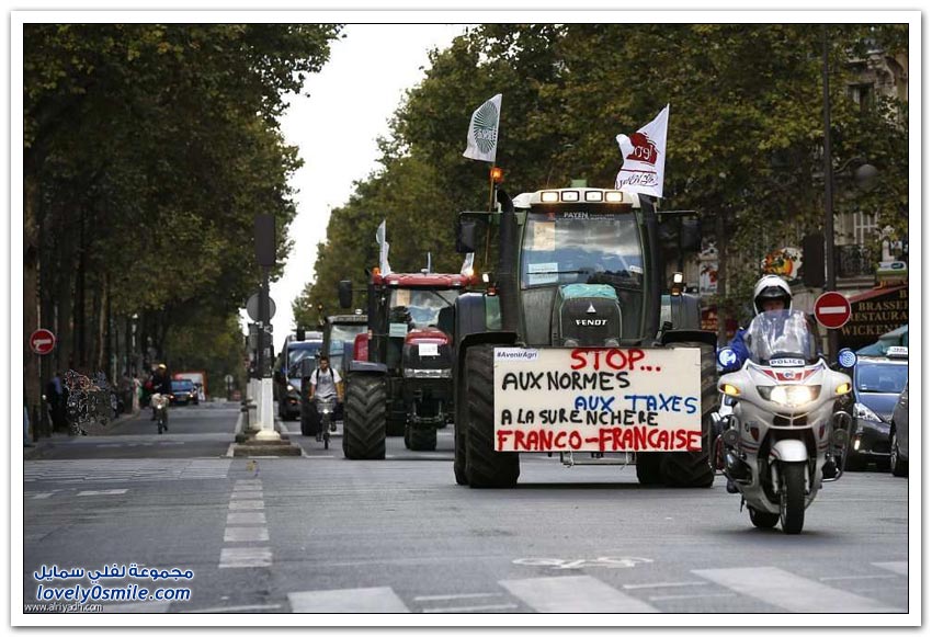 مزارعون فرنسيون يتوجهون إلى باريس بالجرارات والشاحنات للإعراب عن غضبهم إزاء ما يعتبرونه أوضاع السوق التي لا تحتمل.