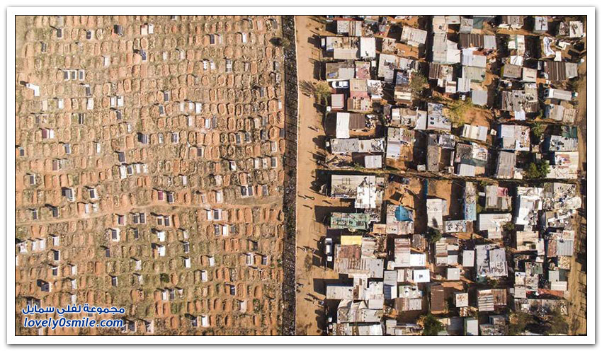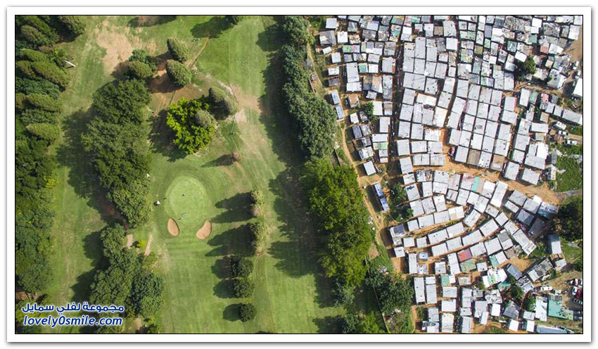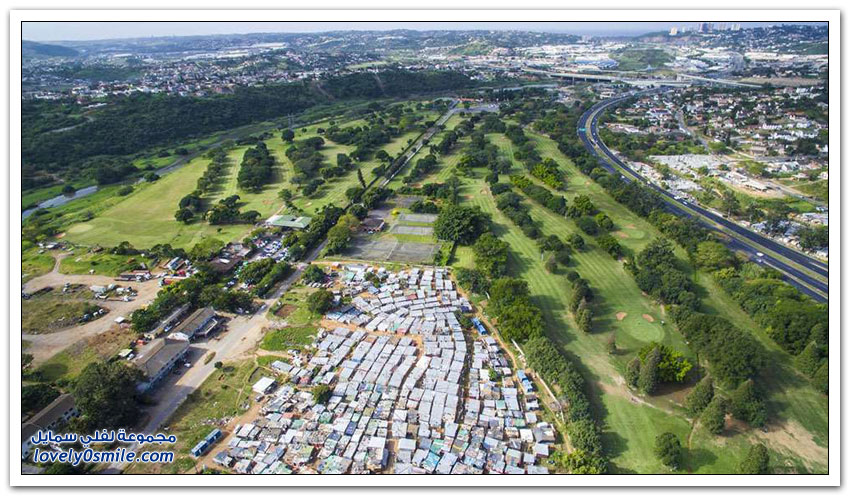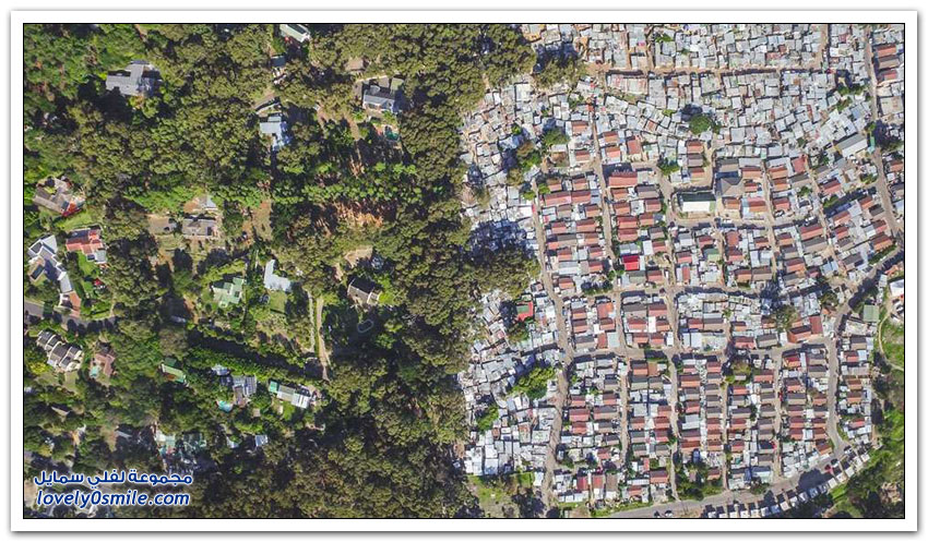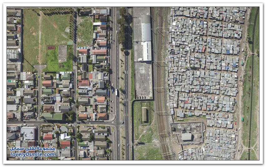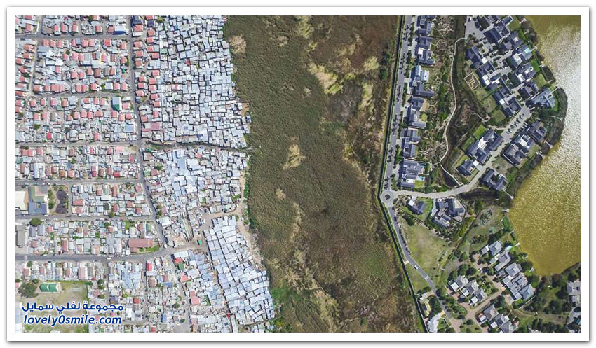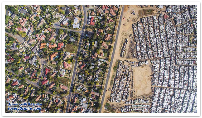 مساكن الفقراء والأغنياء في جنوب أفريقيا نتيجة التمييز العنصري
