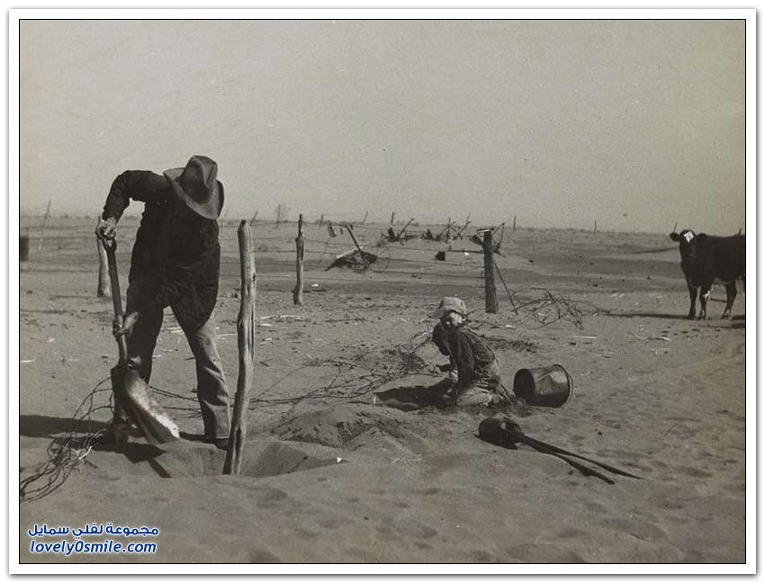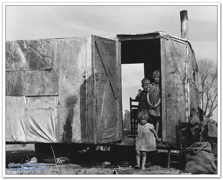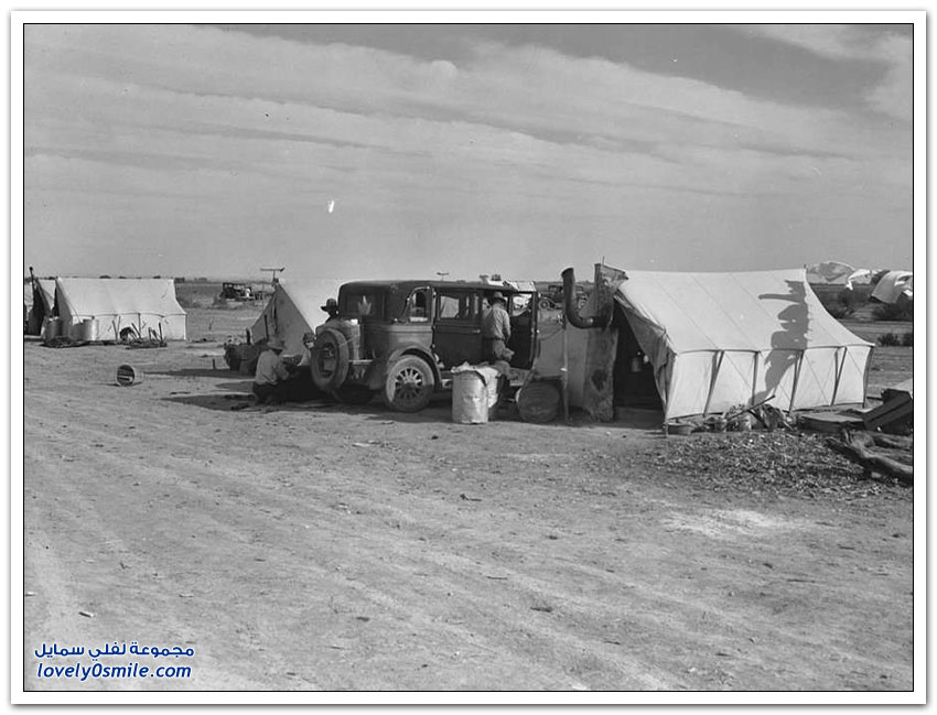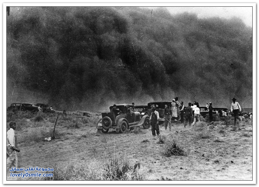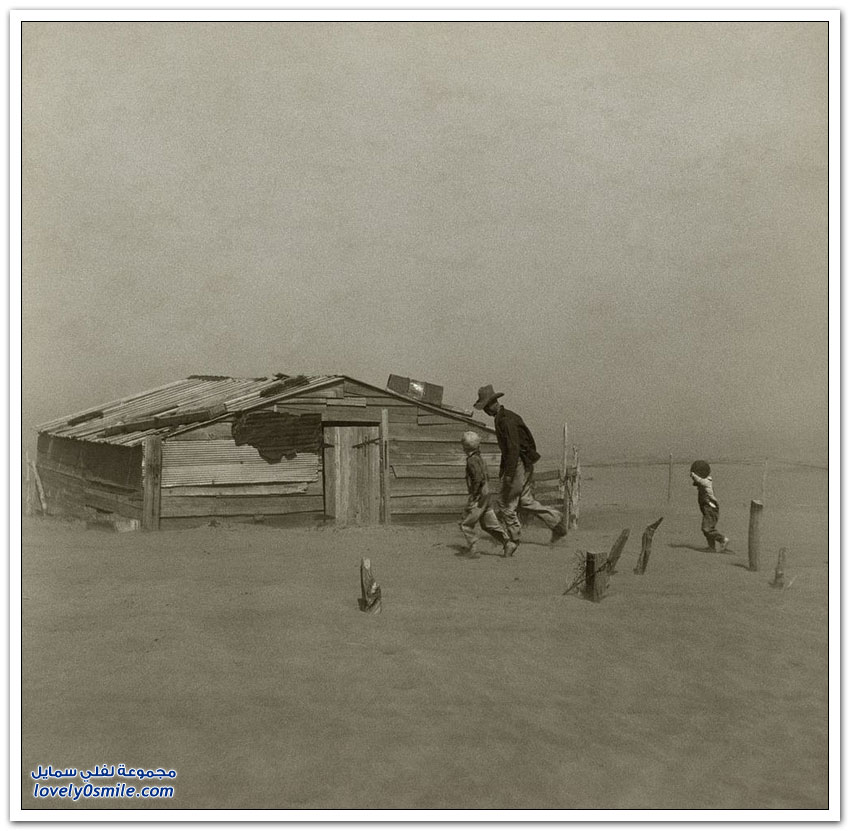 - ووفقًا لما نشرته صحيفة "الديلي ميل" البريطانية، فأن الصور تظهر مدي البؤس والشقاء الذي كان يعيش فيه اللاجئين بعد تعرض أراضيهم إلى عواصف ترابية مدمرة، حيث غطت ملامحهم الأتربة ويرتدون ملابس متسخة ومهرولة، علاوة على عيشهم داخل أكواخ خشبية وخيم احتمائًا من العيش فى العراء في حالة من الفقر المدقع.