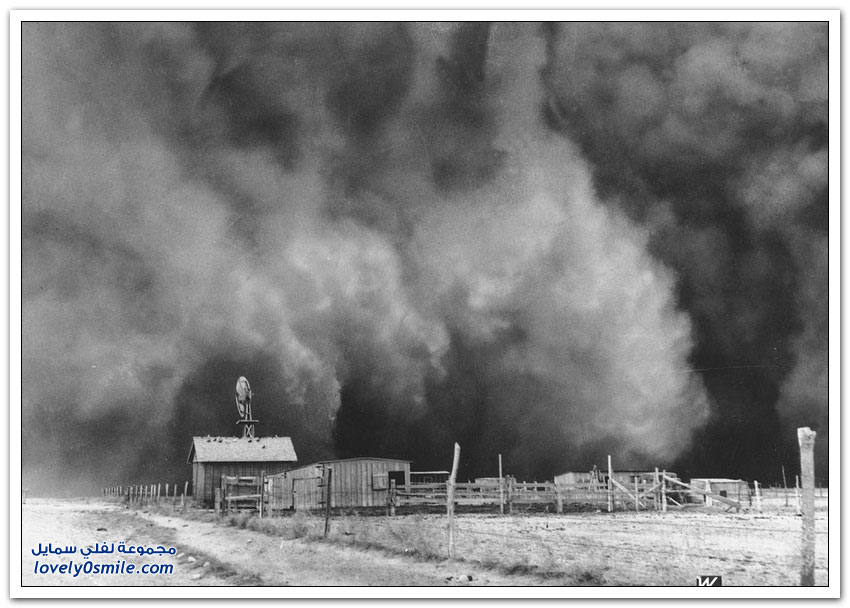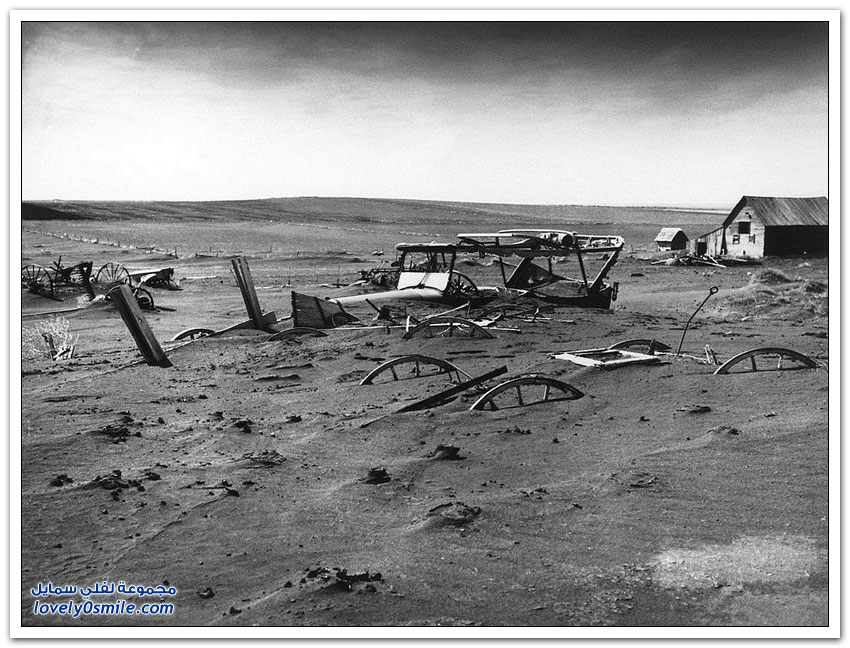 - عرض المصور الأيرلندي "مات لوغري" سلسلة من الصور القديمة يتم تلوينها، يرجع عمرها إلى عام 1930، لمجموعة من اللاجئين من كندا وامريكًا هربوا من بلادهم جراء عواصف ترابية شديدة ألحقت أضرارًا كبيرة بالبيئة والزراعة بتلك البلاد، حيث أجبرت الآلاف من الأسر على التخلي عن مزارعهم هاربين إلى مناطق أخرى للعيش فى أكواخ، بعد دمار أراضيهم التي ضربها الجفاف الشديد لمدة 8 سنوات.