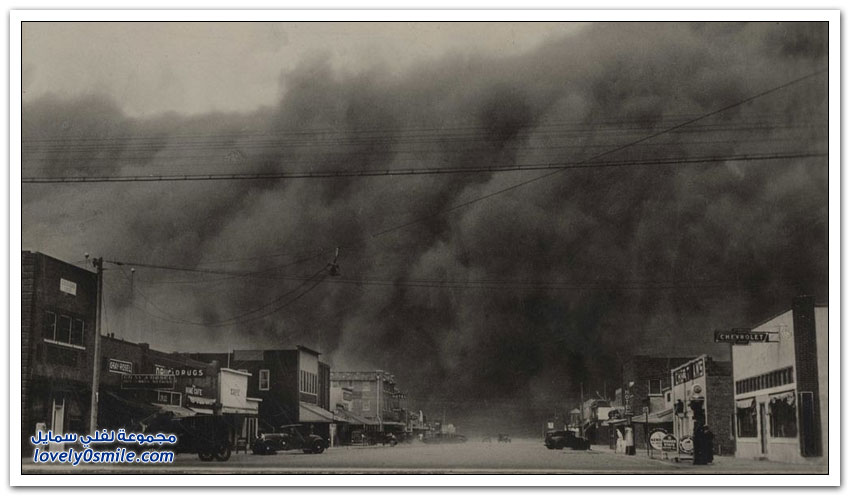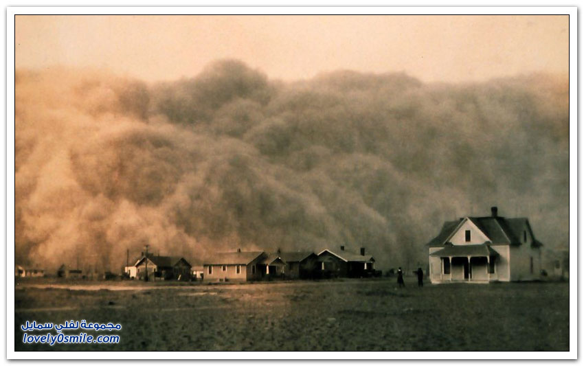 - وذكرت الصحيفة، ان عاصفة الغبار، التي تعرف باسم الثلاثينات القذرة، ألحقت أضرارا كبيرة بالبيئة والزراعة في المروج الأمريكية والكندية خلال الثلاثينيات، حيث تسببت هذه الظاهرة في الجفاف الشديد والفشل في تطبيق أساليب الزراعة في الأراضي الجافة لمنع تآكل الرياح، فيما جاء الجفاف في ثلاث موجات، 1934، 1936، و 1940، بيمنا عانت بعض المناطق في السهول العالية من الجفاف الشديد لمدة تصل إلى ثماني سنوات.
