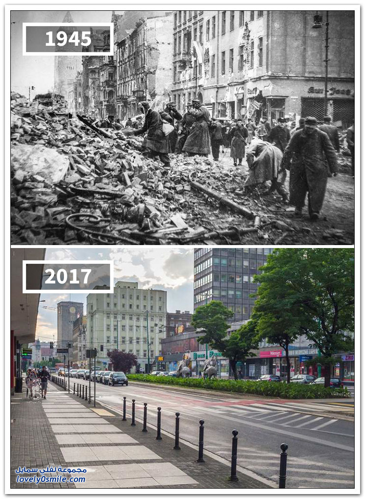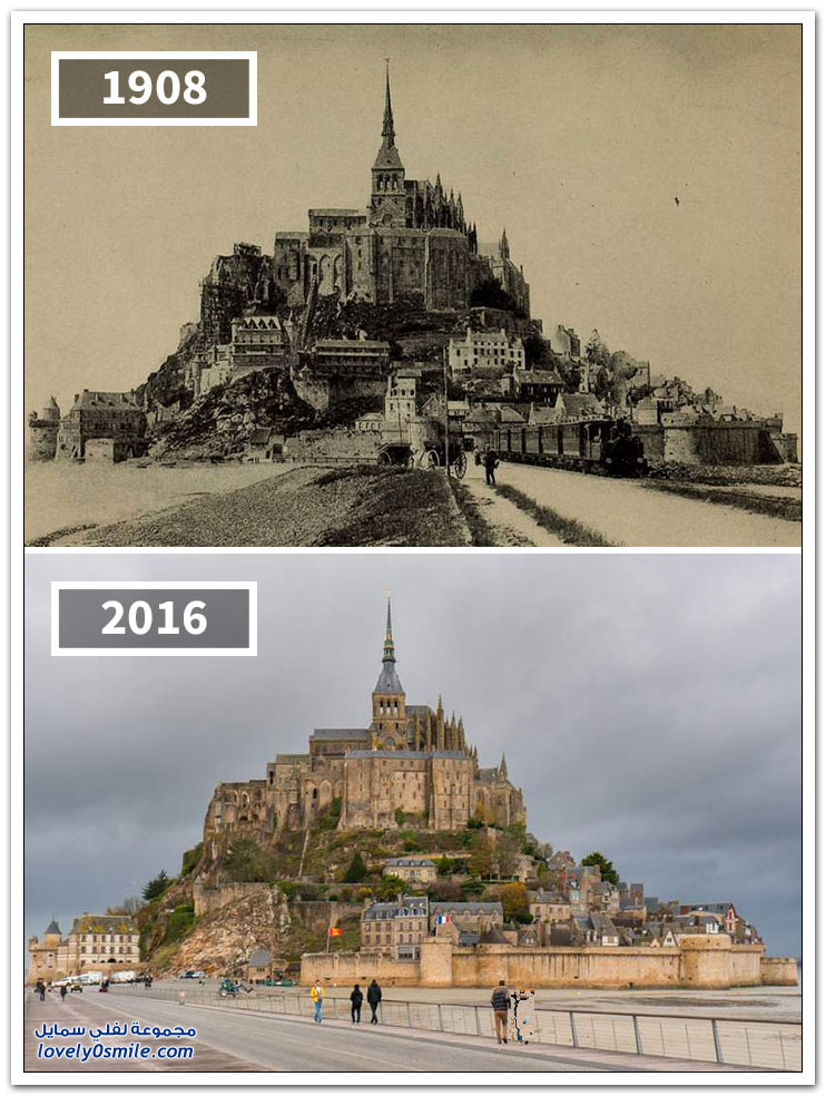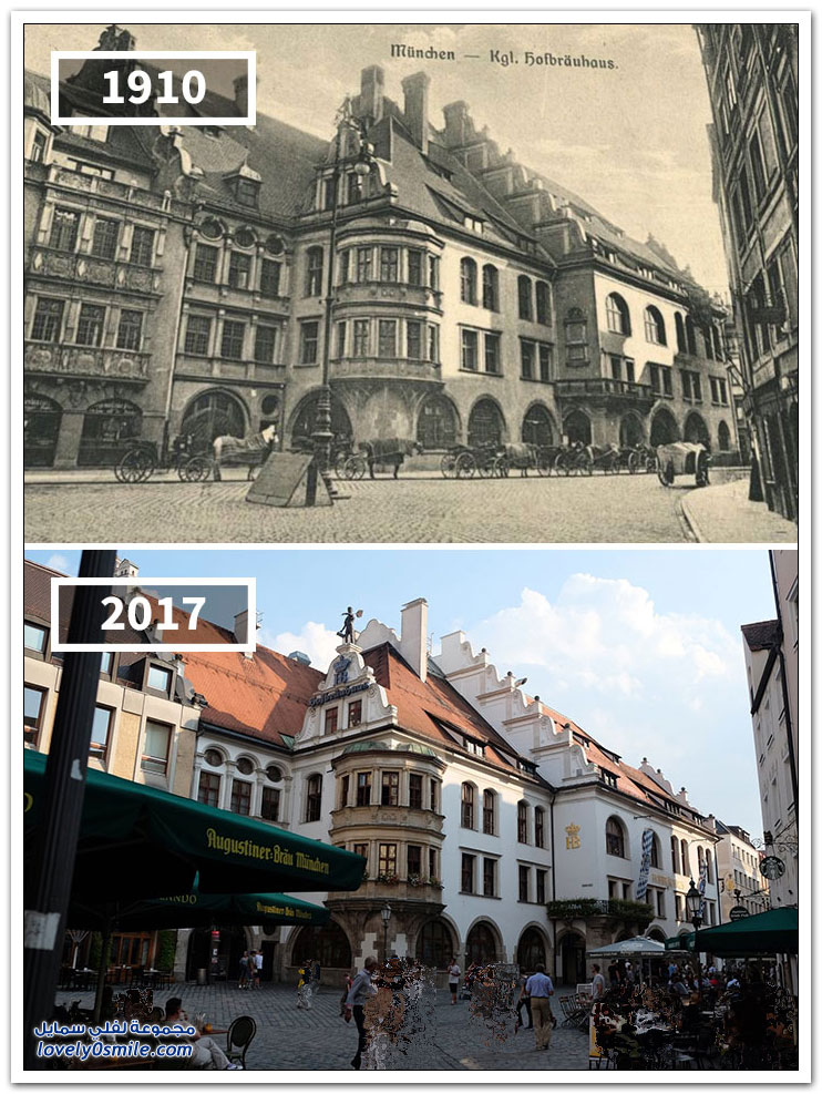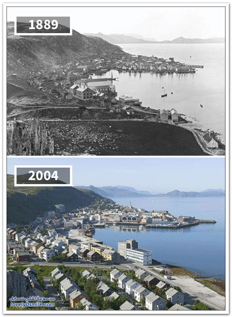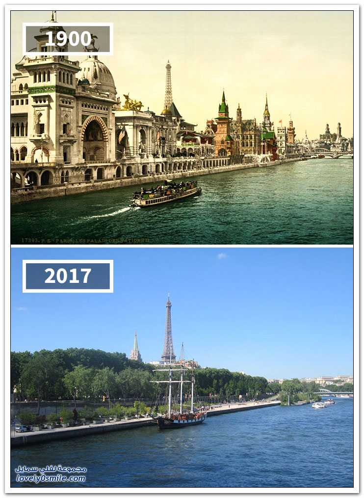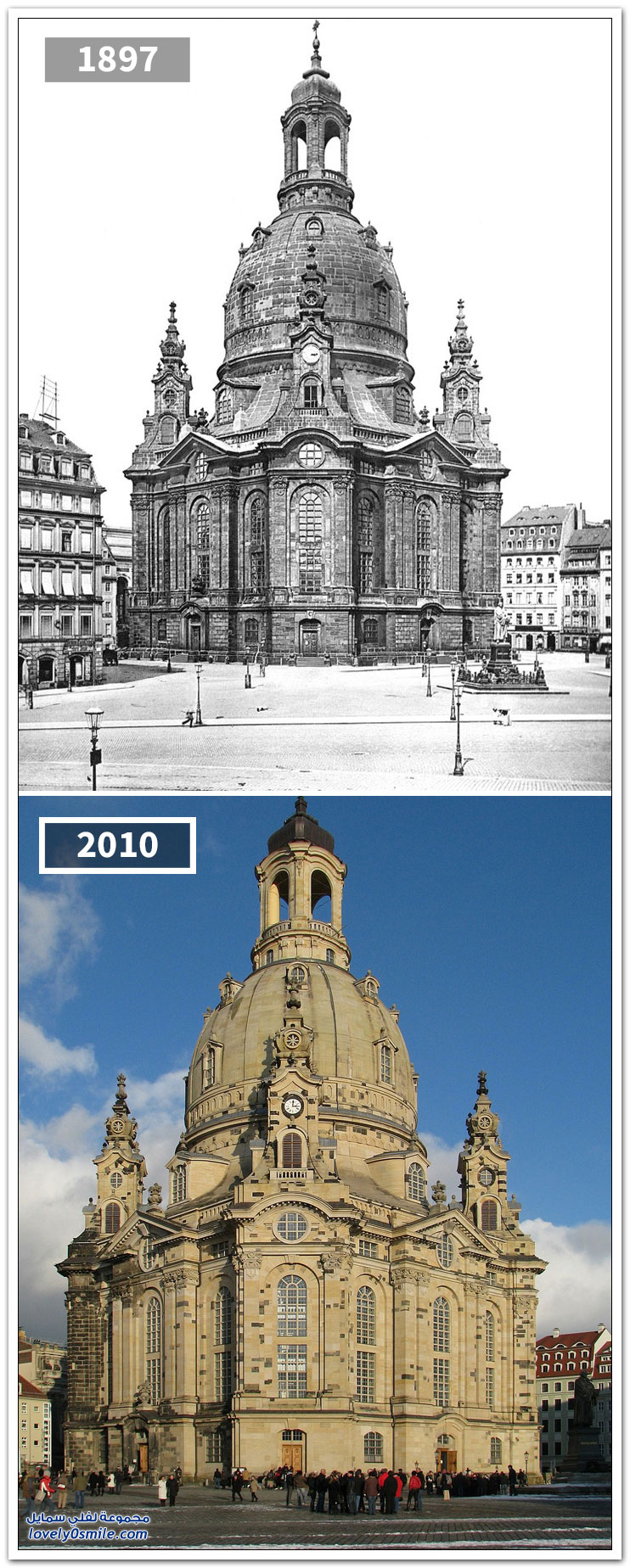 الجزء العلوي من الصورة لناطحة سحاب في نيويورك عام 1932، الولايات المتحدة الأمريكية، والجزء السفلي من الصورة لعام 2011 في لندن
