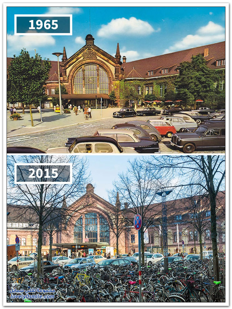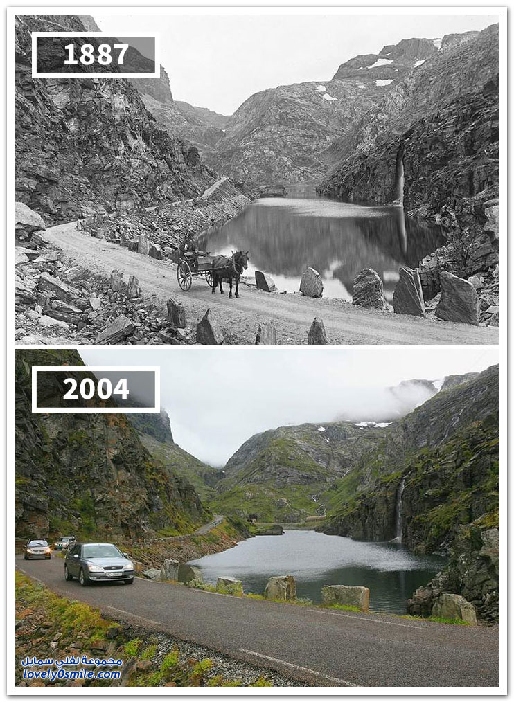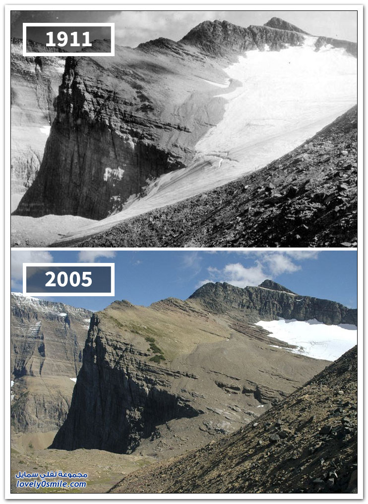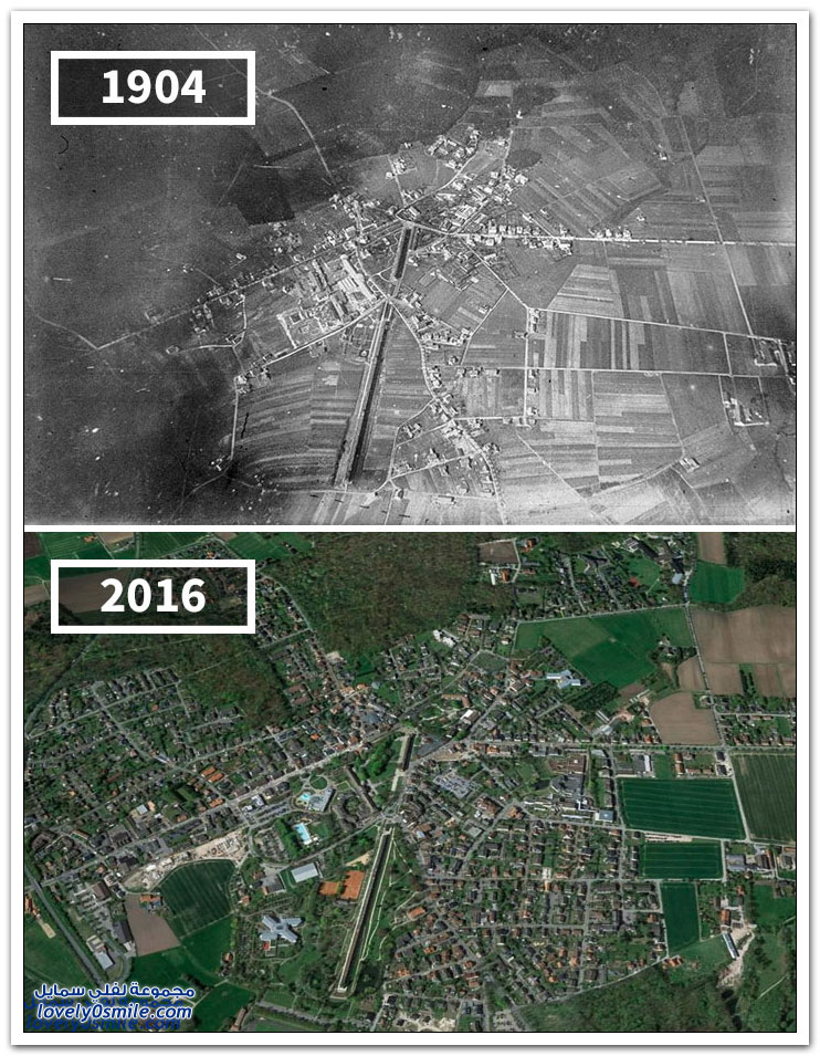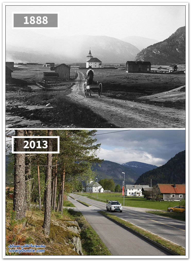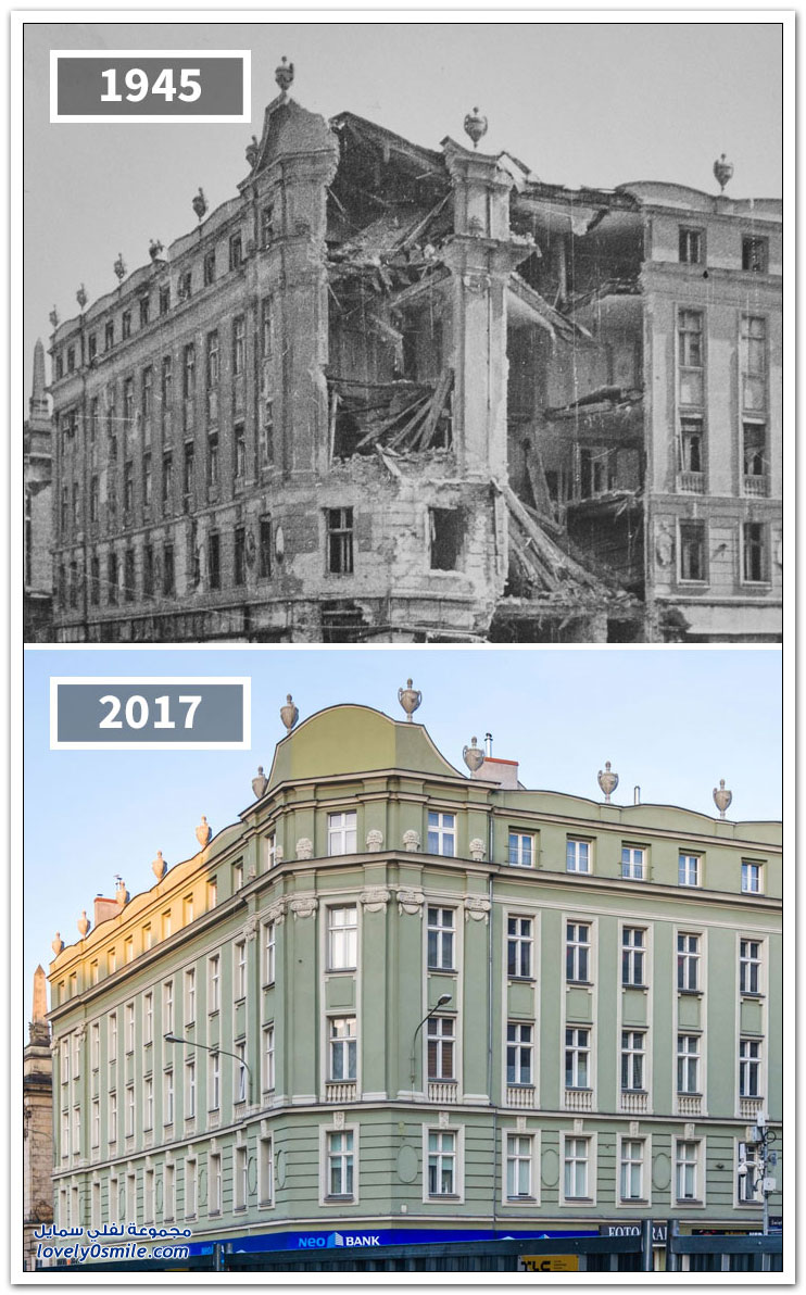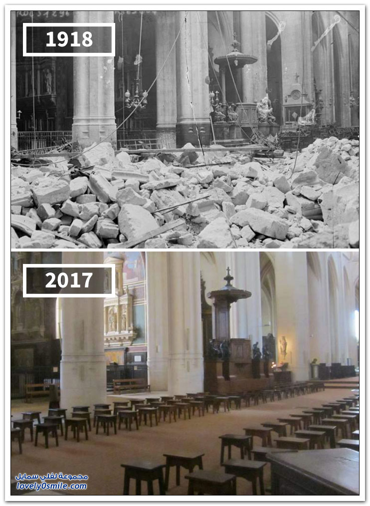 الجزء العلوي من الصورة لناطحة سحاب في نيويورك عام 1932، الولايات المتحدة الأمريكية، والجزء السفلي من الصورة لعام 2011 في لندن