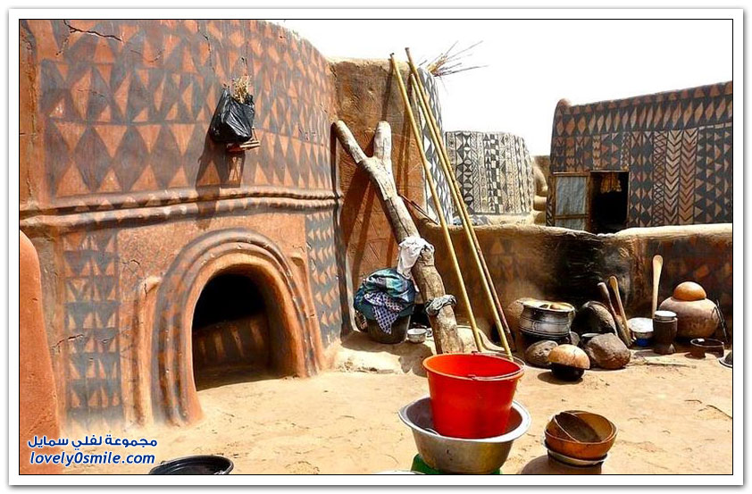 - وبطبيعة الحال، هناك المنازل الملكية التابعة لوجهاء القرية والنبلاء، وهي مصنوعة من الطين ومزينة بأشكال هندسية تماما مثل باقي المنازل.