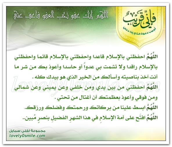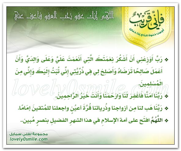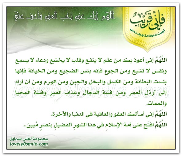 اللهم اني اسألك علما نافعا وقلبا خاشعا ولسانا ذاكرا ورزقا طيبا وعملا متقبلا اللهم بارك فيمن صممها واخرجها وقه عذاب النار اللهم آمين. كل الشكر وجزاكم الله خيرا وباركم فيكم