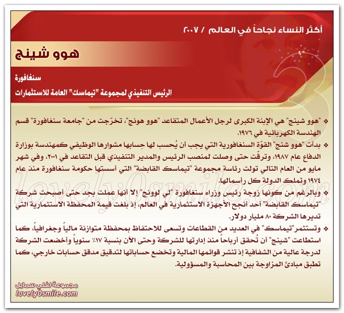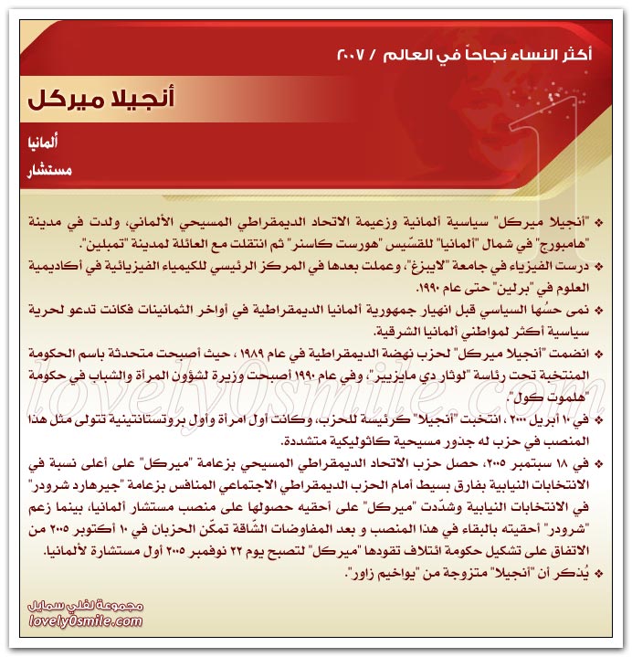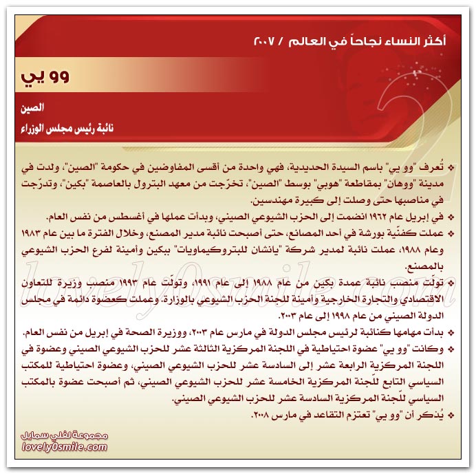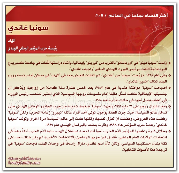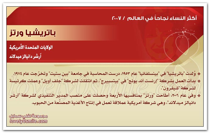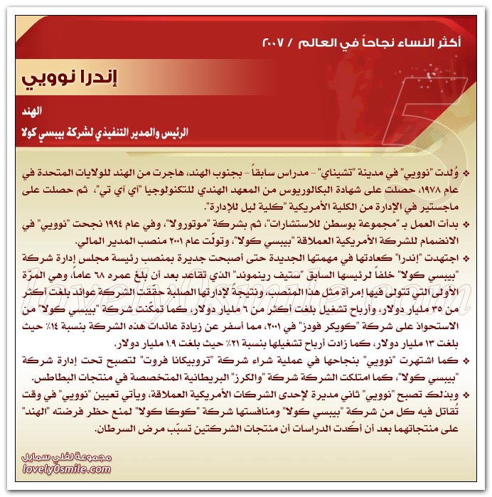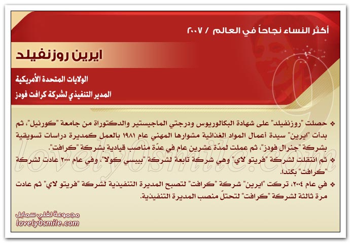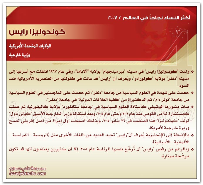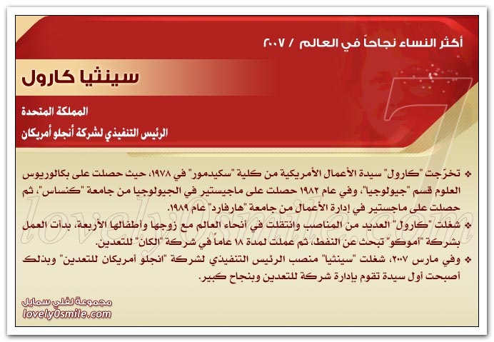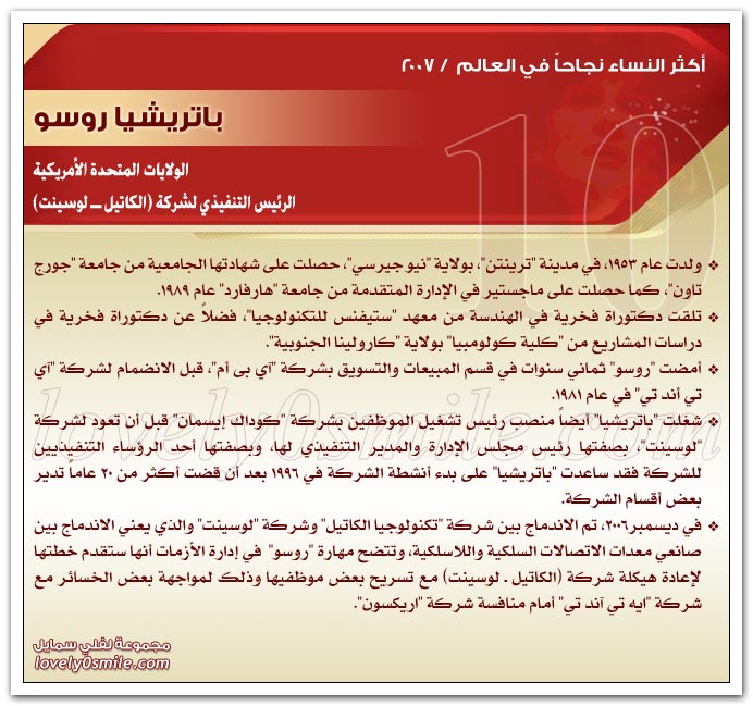 * يذخر سجلات التاريخ بقصص نجاح للعديد من النساء ، مما يؤكد حقيقة أن النجاح ليس قاصراً على الرجال .. ولكن متى توفر العمل الجاد والمثابرة وعدم التهاون في استغلال الفرص السانحة يتحقق النجاح سواء للرجال أو للنساء ، بل إن النجاح الذي تحققه المرأة قد يشهد نمواً متزايداً لا يمكن تخيله.