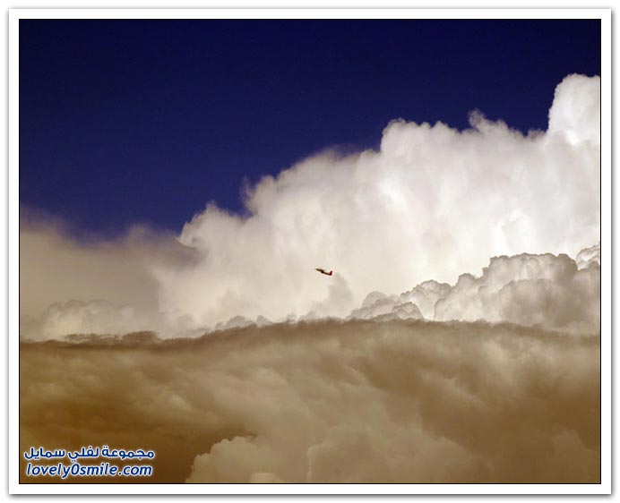 طائرة تخترق السحب ذات اللون البني فوق الوادي الكبير بمدينة أريزونا الأمريكية.