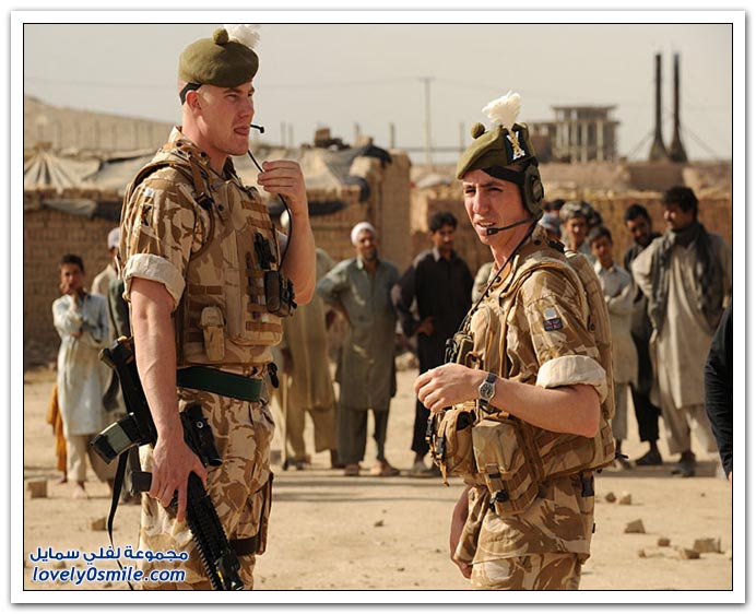 أفغانيون يتطلعون إلى جنديين بريطانيين من حلف الناتو خلال دورية في إحدى ضواحي كابول.