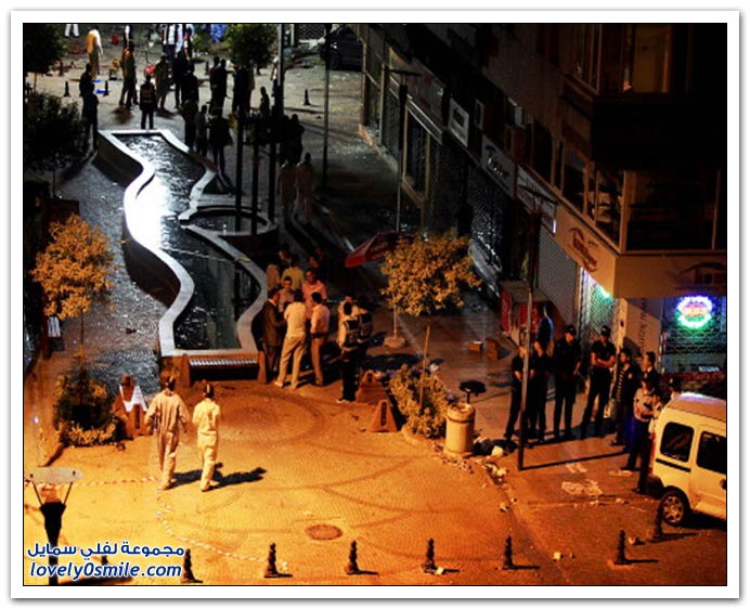 رجال الشرطة التركية يحققون في انفجار قنبلتين داخل منطقه تجارية مزدحمة بمدينة اسطنبول.