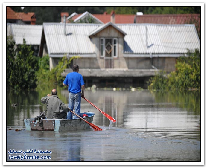 استخدام القوارب في شوارع قرية بالابينستي المولدوفية جراء الفيضانات.