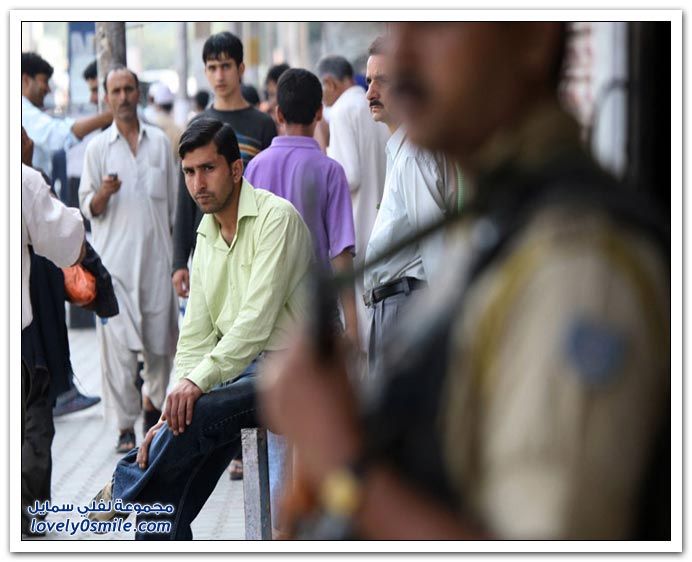 حاجز أمني هندي بمدينة سريناجار في كشمير.