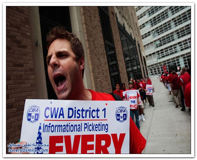 تظاهرة عمالية في نيويورك ضد فصل 65 ألف عامل.