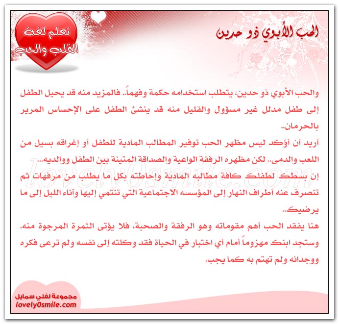 كلمات مثل البلسم جميل الحب والاجمل ان نعيش هذا الحب في حياتنا .. شكرا على هذا المجهود المثمر.