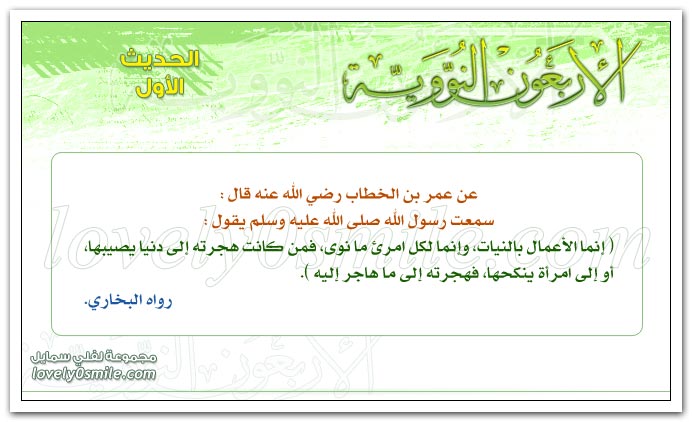 - هذا الحديث اصل عظيم في أعمال القلوب , لأن النيات من أعمال القلوب , قال العلماء: وهذا الحديث نصف العبادات , لأنه ميزان الأعمال الباطنة وحديث عائشة رضي الله عنها: ( من أحدث في أمرنا هذا ما ليس منه فهو رد ) وفي لفظ آخر: ( من عمل عملا ليس عليه امرنا فهو رد ) نصف الدين , لأنه ميزا الأعمال الظاهرة فيستفاد من قول النبي صلى الله عليه وسلم: ( إنما الأعمال بالنيات ) أنه ما من عمل إلا وله نية , لأن كل إنسان عاقل مختار لا يمكن أن يعمل عملا بلا نية , حتى قال بعض العلماء: " لو كلفنا الله عملا بلا نية لكان من تكليف ما لا يطاق " ويتفرع من هذه الفائدة: