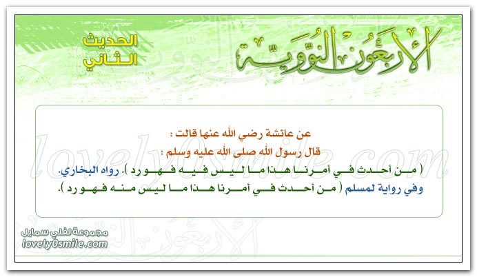 - قال العلماء: إنه ميزان ظاهر الأعمال وحديث عمر الذي هو في أول الكتاب: ( إنما الأعمال بالنيات ) ميزان باطن الأعمال , لأن العمل له نية وله صورة فالصورة هي ظاهر العمل والنية باطن العمل.