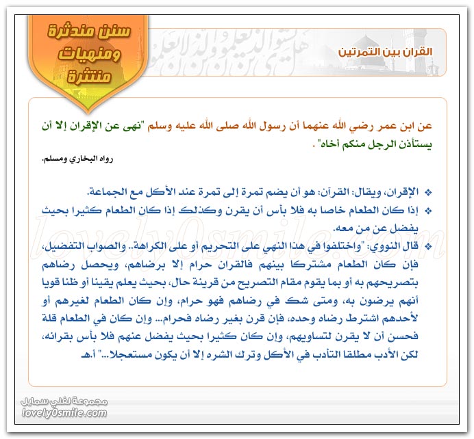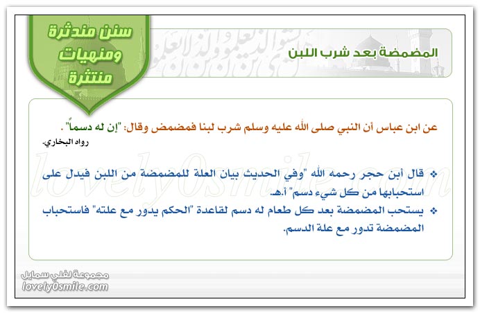 جزاك الله خيراً على هذه الأحاديث بالفعل انا كانت حديثة علي لاأعرف أنه حين شرب اللبن يستحب التمضمض وأنه حين أكل التمر مع الجماعة لايستحب الأقران في التمر مشكور ولك تحياتي من استنبول