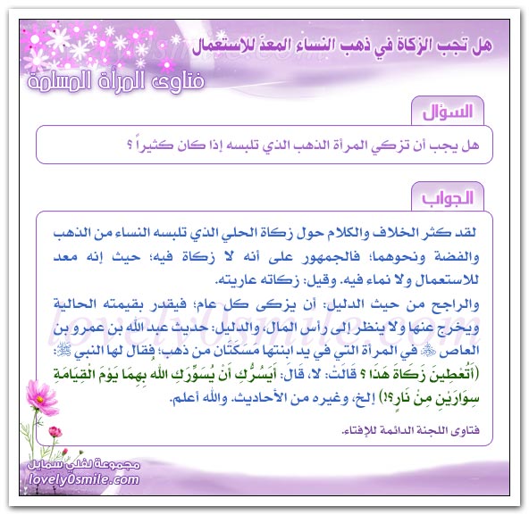 هل تجب الزكاة في ذهب النساء المعد للاستعمال ؟