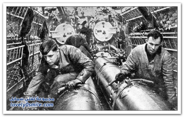 الصورة لتجهيز طوربيدات داخل الغواصة ولا أستطيع الجزم لا عن جنسية الجنود ولا تاريخ الصورة.