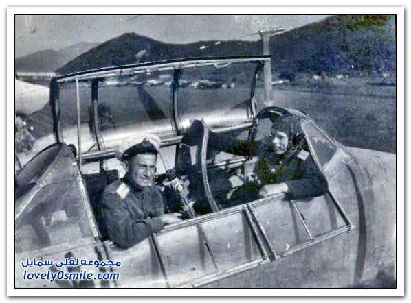لا أستطيع الجزم لمن هذه الصورة من الفرقاء، من الواضح أنها للحرب العالمية الثانية خلال اشتباك جوي بين الطائرات إذ لم تكن التقنية قد تطورت بما فيه الكفاية ليتولى الطيار القيادة والاشتباك في وقت واحد.