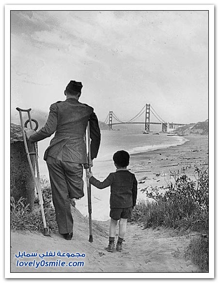 الحرب العالمية الثانية العلاقات العامة: جندي أمريكي أمام جسر البوابة الذهبية (سان فرانسيسكو)