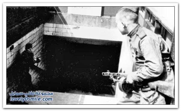 الرشاشات روسية ، غالبا جنود روس خلال عملية تطهير موقع ما , خلال الحرب العالمية الثانية.