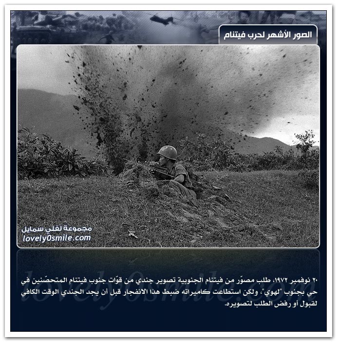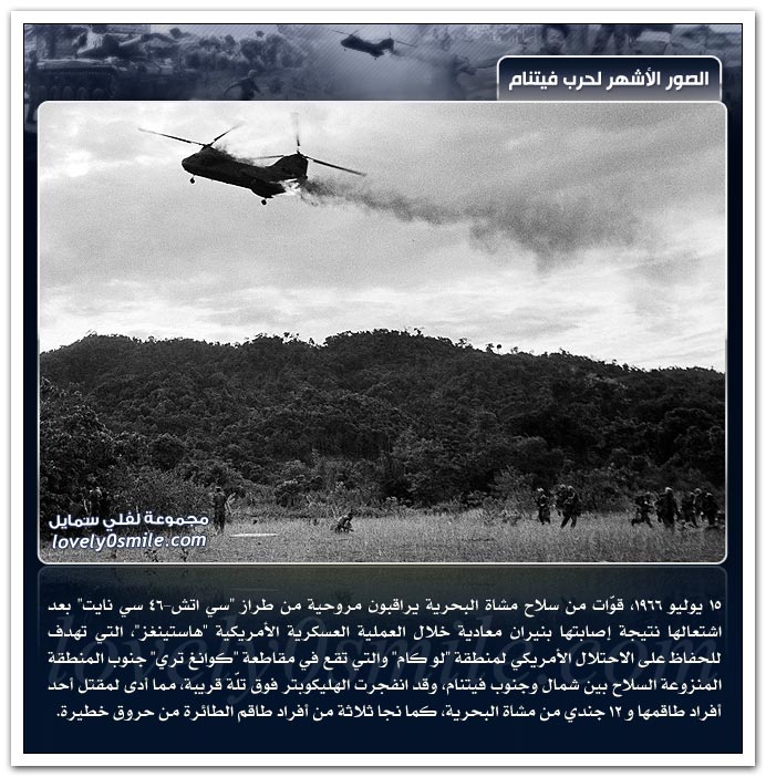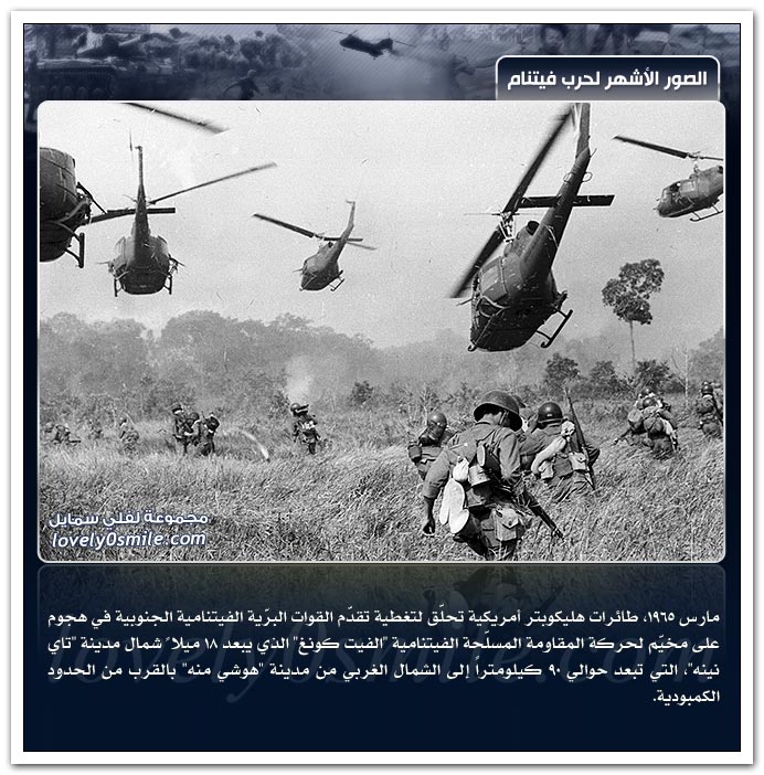 - وفيما يلي نستعرض لقطات من حرب فيتنام التي كانت نزاع بين جمهورية فيتنام الديمقراطية (فيتنام الشمالية)، متحالفة مع "الاتحاد السوفيتي" والصين، ضد جمهورية فيتنام (فيتنام الجنوبية) متحالفة مع "أمريكا" ، "كوريا الجنوبية" ، "تايلاند" ، "أستراليا" ، "نيوزيلندا" و "الفلبين" وذلك في الفترة ما بين 13 سبتمبر 1956 و 17 يونيو 1975 ، وقد انتهت باتحاد فيتنام الشمالية والجنوبية.