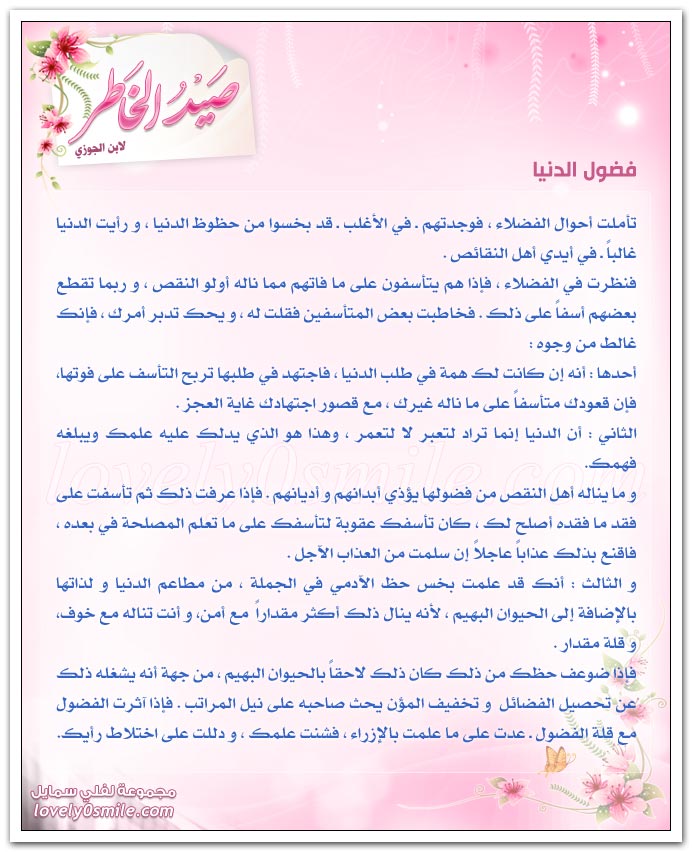 فضول الدنيا + من يرعى حول الحمى يوشك أن يواقعه