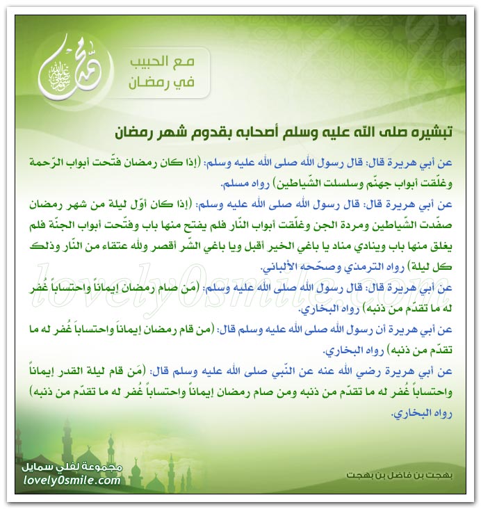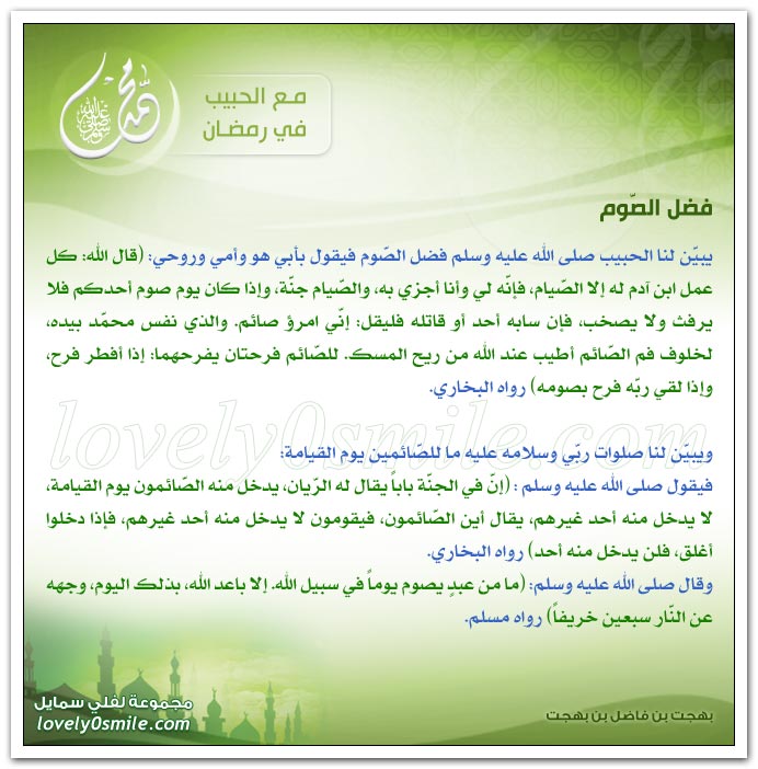 فضل الصوم + تبشيره صلى الله عليه وسلم بقدوم شهر رمضان
