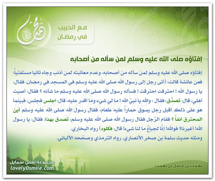 إفتاؤه عليه السلام لمن سأله من أصحابه + رحمته عليه السلام بأصحابه وأمته