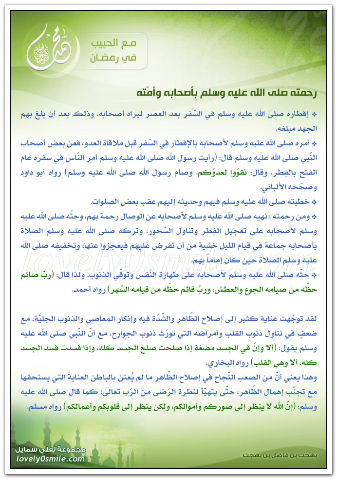 أحواله عليه السلام مع زوجاته في رمضان + حثه لأزواجه على فعل الخير