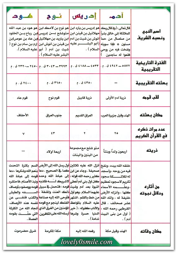للمرة الأولى أجد معلومات عن الأنبياء والرسل بهذه الطريقة المنظمة والواضحة والسهلة.. حشرنا الله وإياكم مع أنبيائه ورسله والصالحين.. اللهم آمين.