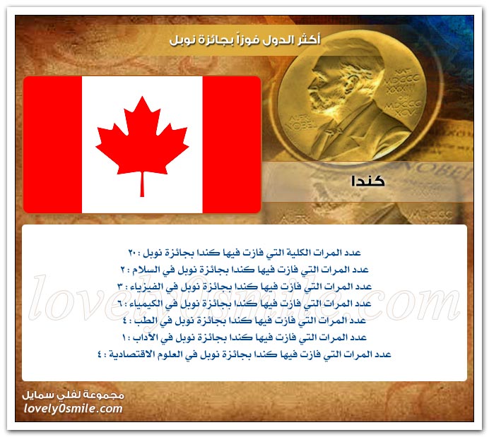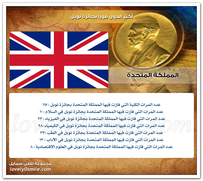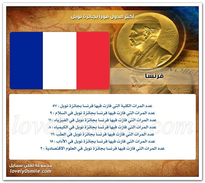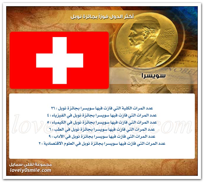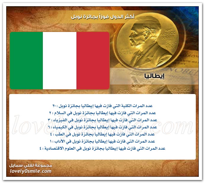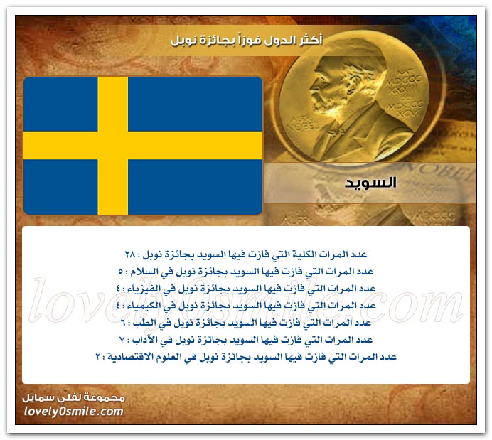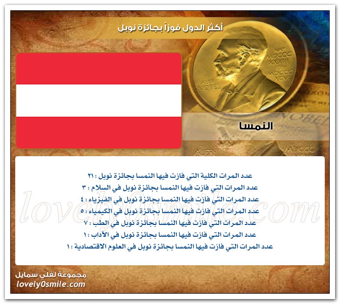 كنت اتمنى ان ارى مصر بين هذه الدول حيث فاز منها الكثير من ابنائها على سبيل المثال الدكتور احمد زويل الرئيس انور السادات الكاتب نجيب محفوظ و اخرون