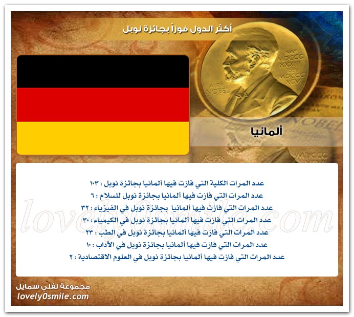 والآن سنتعرف على أكثر الدول فوزاً بتك الجائزة القيمة ...