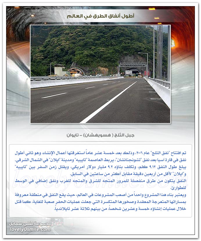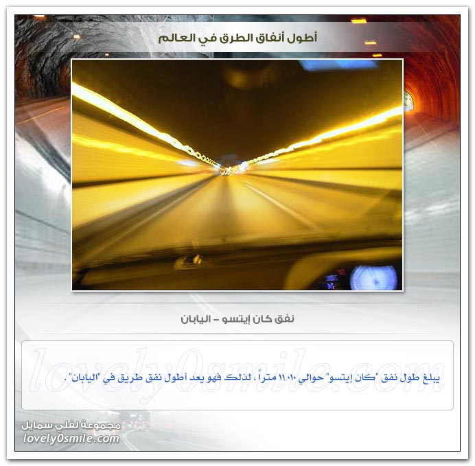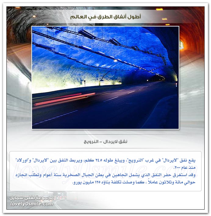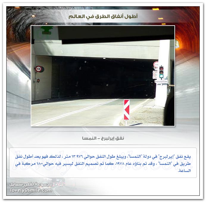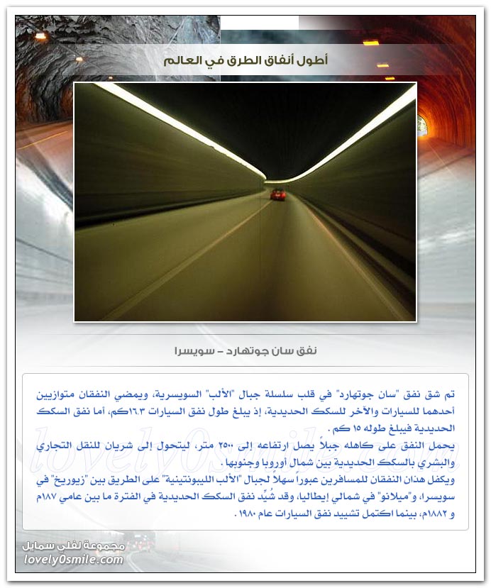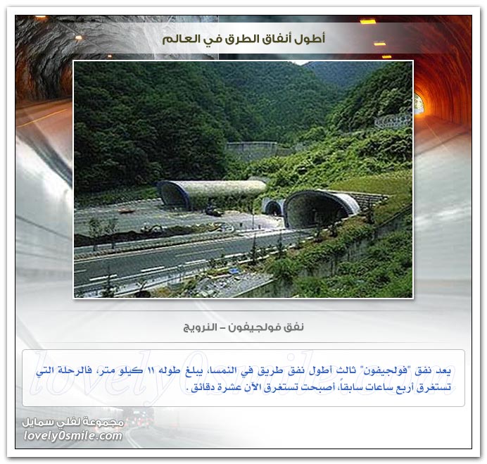 - وقد جمعت هنا بعض من أطول أنفاق الطرق في العالم ... فهيا بنا لنتعرف عليهم ...