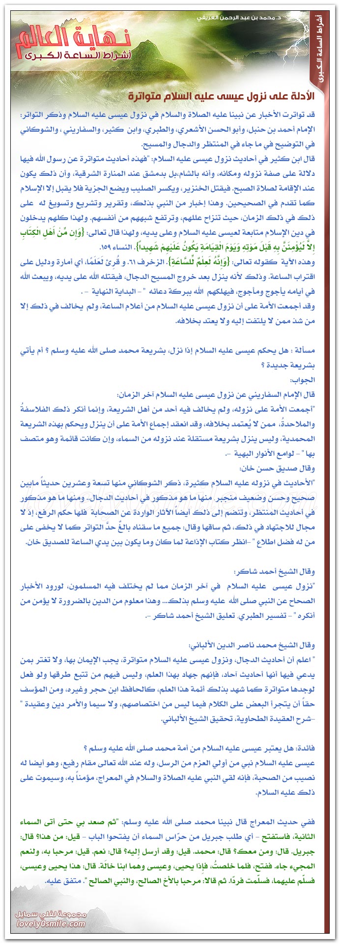 الموضوع جدا رائع عجل الله نزوله عليه السلام وفرج كربة المؤمنين وأذهب غيظ قلوبهم، اللهم أدخلنا الجنة وقنا عذاب النار. آمين.