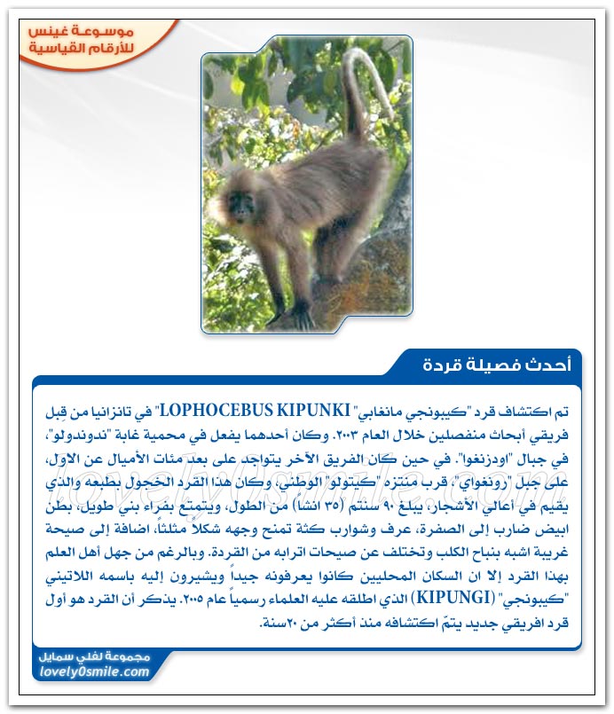 أضخم قرد + أحدث فصيلة قردة + أول توأم كوالا + أول ثديي يتنفس من جلده