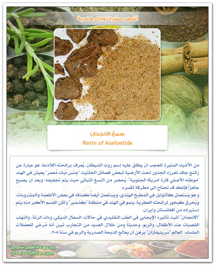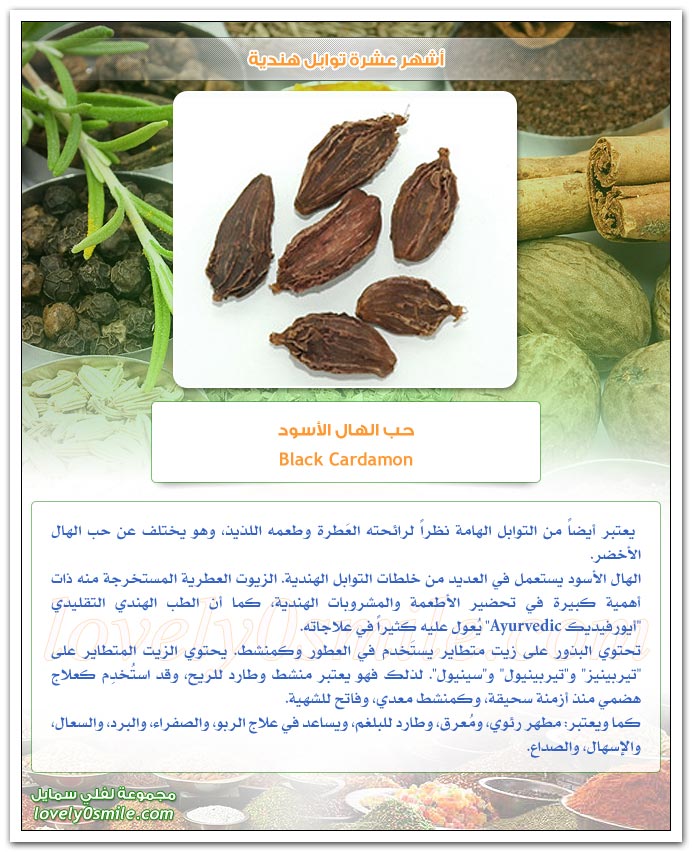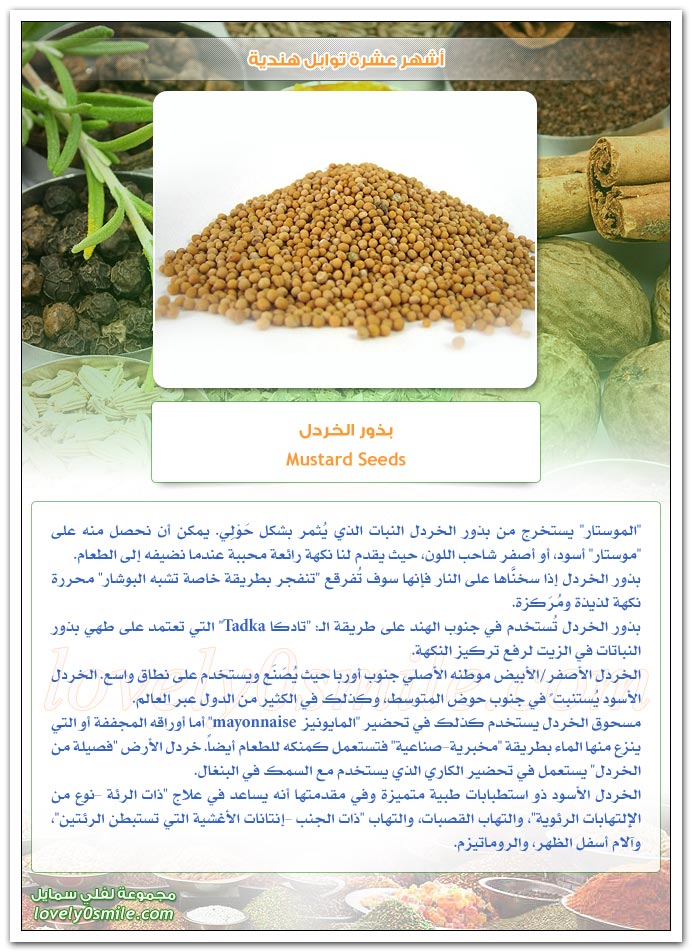 - القائمة التالية تحتوي على أشهر التوابل الهندية التي تستخدم في المطبخ الهندي، ندعوك لكي تستخدمها في تحضير وجباتك فإن لم يكن كلها فلا أقل من بعضها.