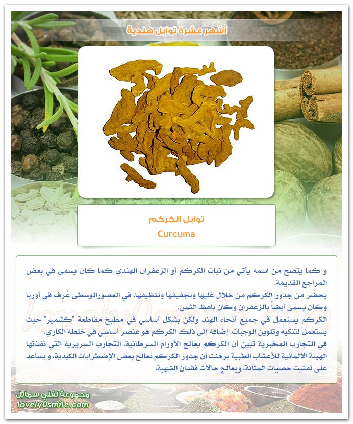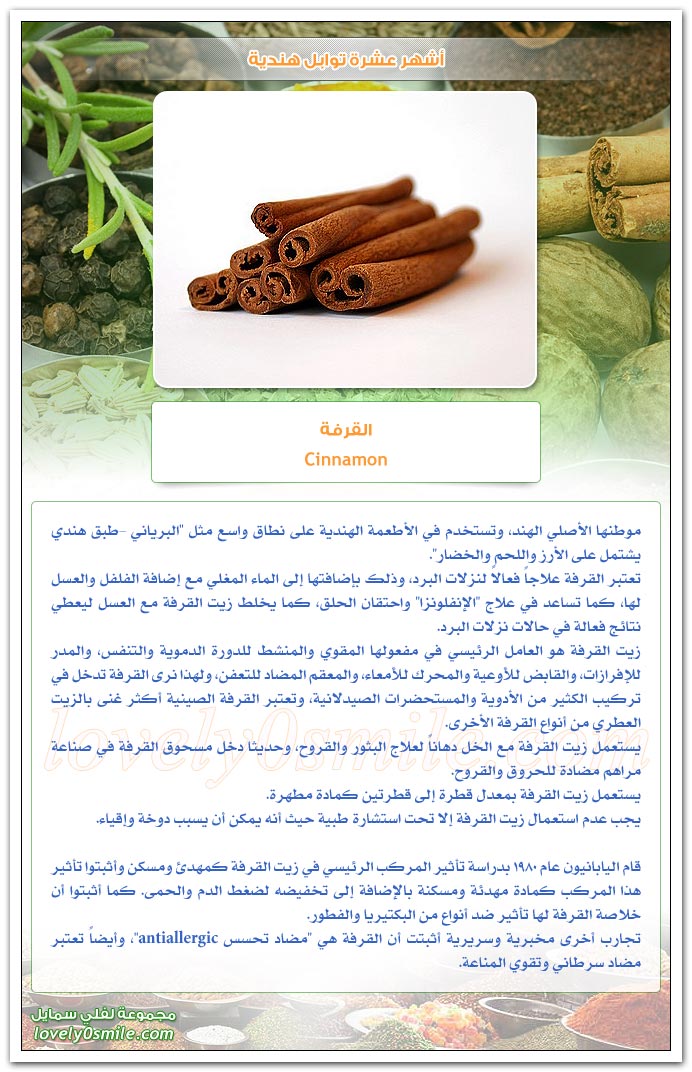 القرنفل أيضا مهم ويوجد عندنا في مصر توابل صحية جدا المهم في طريقة الاستعمال مثل الزعفران والبابركا والينسون والزعتر مش بس الهنود أحنا العرب سابقين بزمان .