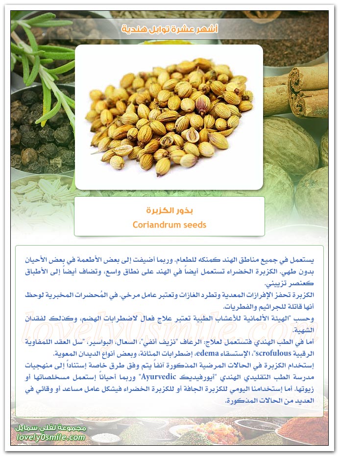- وإذا أشرنا إلى أن هذه التوابل "أو النباتات" تعالج حالات قد تكون مستعصية فإن ذلك لا يتم أحياناً إلا تحت إشراف طبي خاص، ومن خلال المستخلصات والزيوت العطرية، ولكنها تشكل لنا من خلال تناولها بشكلها الطبيعي مع وجباتنا عنصر وقاية هام.