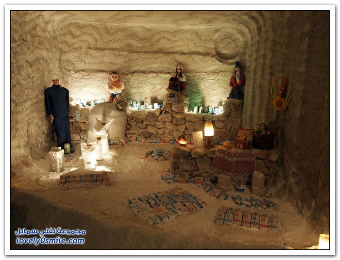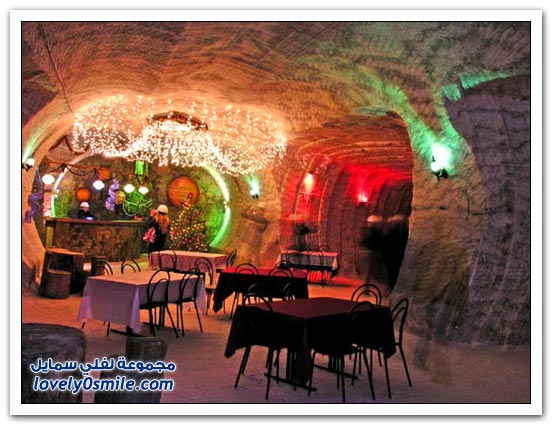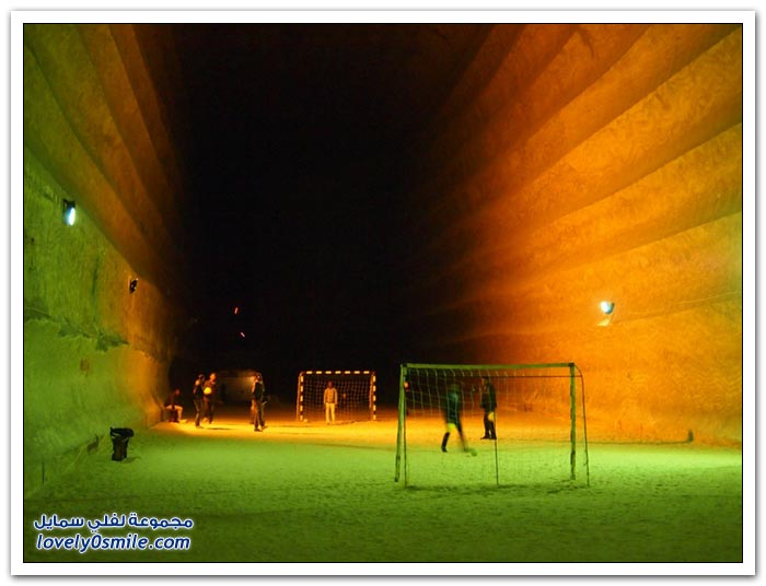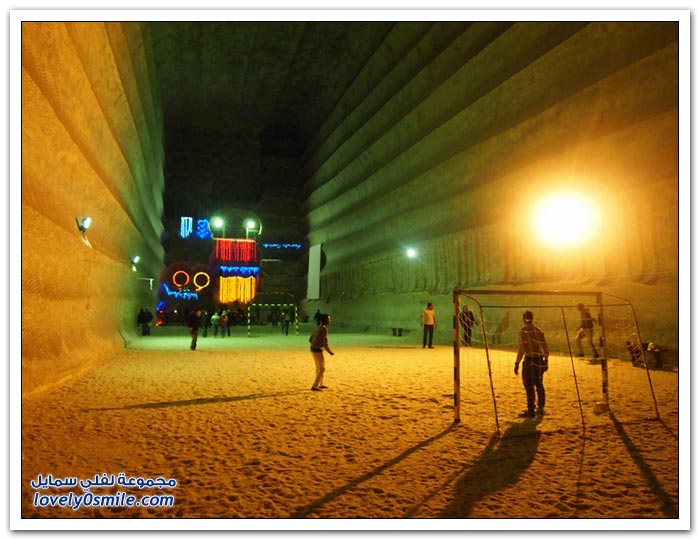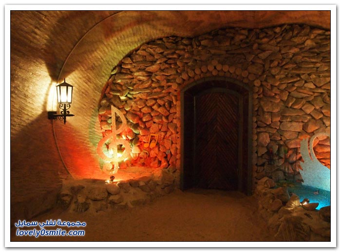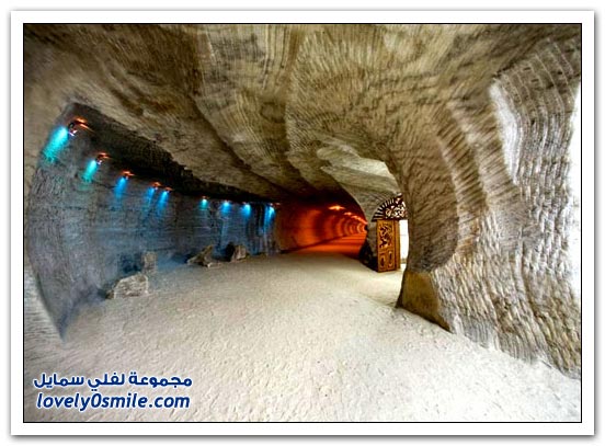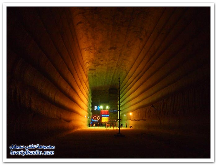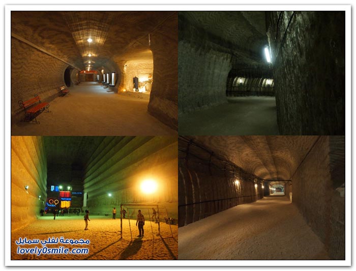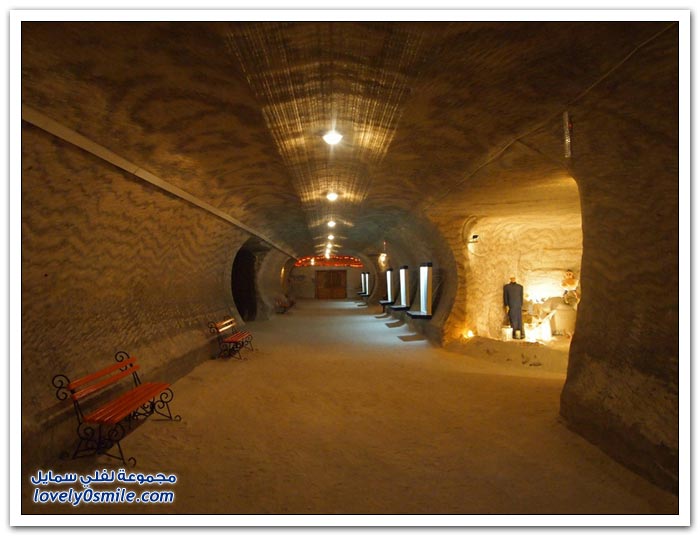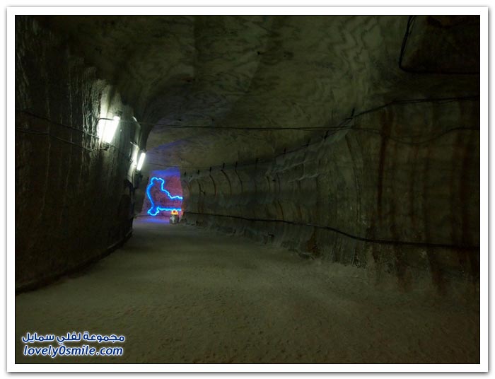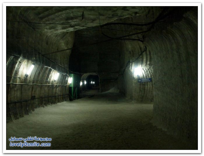 - النزول إلى المنجم يستغرق فقط دقيقتين على متن مصعد ينقلك إلى عمق 300 متر، و ببعد زمني مقداره 270 مليون سنة هو عمر هذا المنجم , ويبلغ ارتفاع سقفه 30 متر، حيث ستصبح في عالم جديد كل شيء فيه مصنوع من الملح، الجدران، الأسقف، الأرضيات، الأشجار.إلخ.